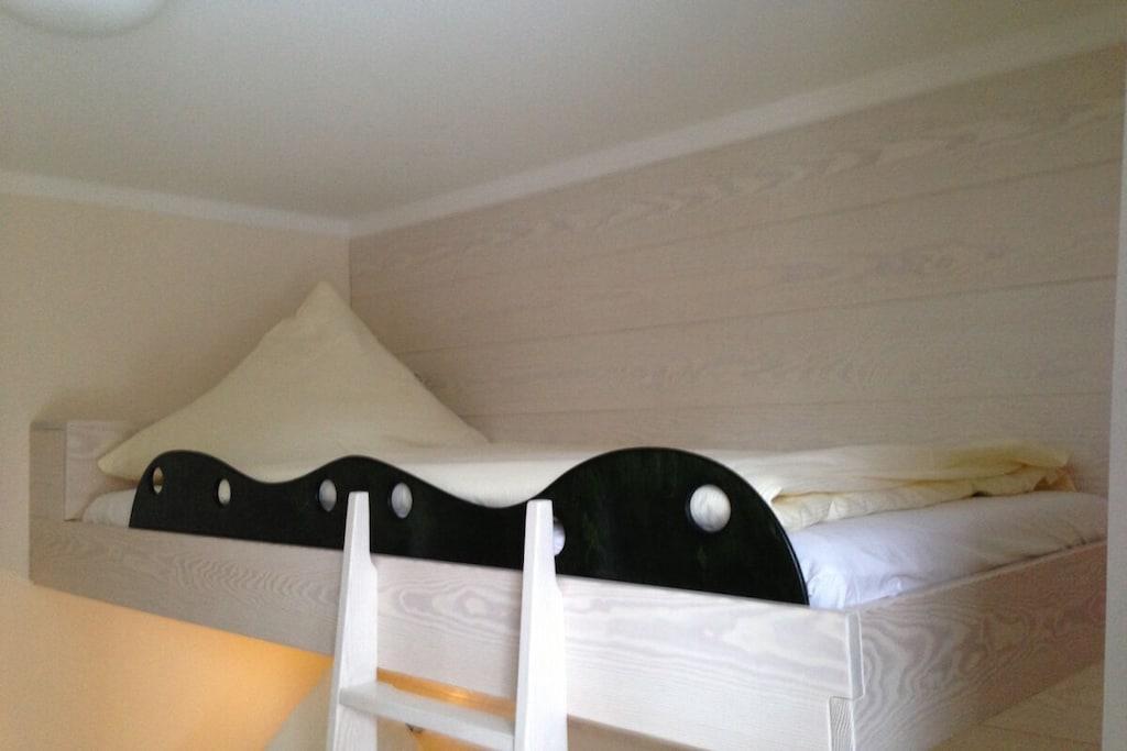 Genießen Sie Ihren Urlaub in Deck 2, mit bodentiefen Fenstern, Südwest Terrasse und elektrischer Sonnenmarkise. Sie gelangen von der komfortablen halboffenen Küche in den großzügigen Wohn-Essbereich. Bei der Einrichtung der Wohnung wurde auf hochwertige Materialien Wert gelegt. In den 2 separaten Schlafzimmern mit TV erwartet Sie hoher Schlafkomfort mit höhenverstellbaren Lattenrosten. Ein Schlafzimmer ist mit einem Doppelbett, das andere mit einem spezial angefertigten Etagenbett mit Buch- und Leseablage ausgestattet. Deck 2 verfügt über Loewe-TV´s, Musikanlage und kostenlosem Internetzugang über WLAN. Das hochwertige Bad mit viel Tageslicht ist mit einer Glaskomfortdusche, Badewanne, Fußbodenheizung und Handtuchwärmer ausgestattet.