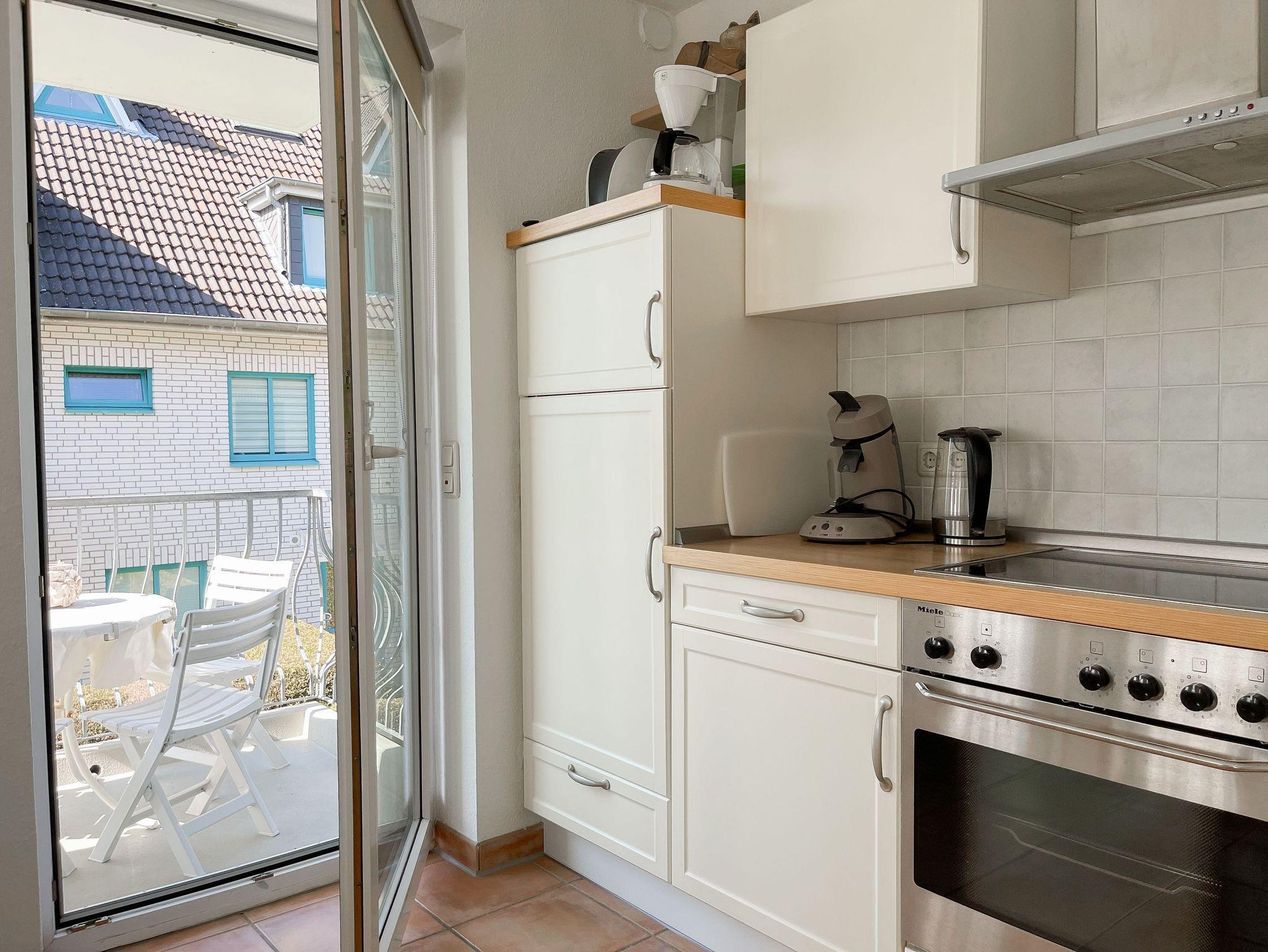 Die Ferienwohnung Kleine Brise liegt nur 80 Meter vom Sandstrand Timmendorfer Strand entfernt und bietet einen sonnigen Balkon.