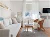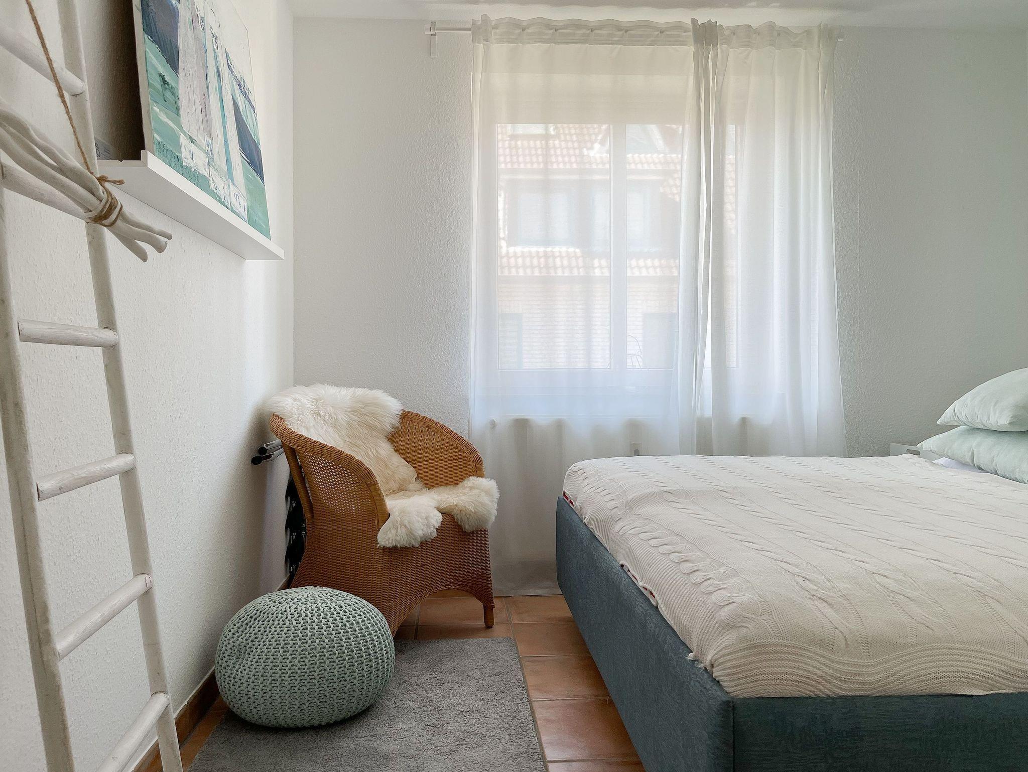 Die sonnige zwei Zimmer Ferienwohnung befindet sich in der 1. Etage und verfügt über kleinen Sonnenbalkon, der mit Gartenmöbeln ausgestattet ist. Der Wohnbereich verfügt über ein Sofa mit Schlaffunktion und TV, eine offene Küche und ein gemütlicher Essbereich, der im Erker untergebracht ist. Das Schlafzimmer ist mit einem Doppelbett (180x200) und einem Kleiderschrank ausgestattet. Das Duschbad verfügt über ein Fenster und ist hell und ansprechend. WLAN steht zur kostenlosen Nutzung zur Verfügung.
