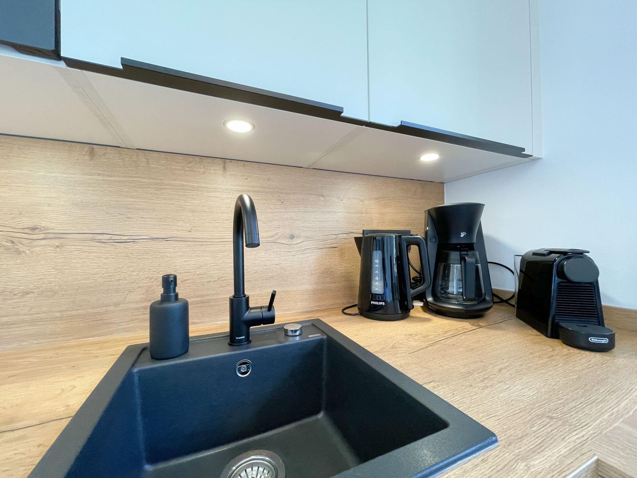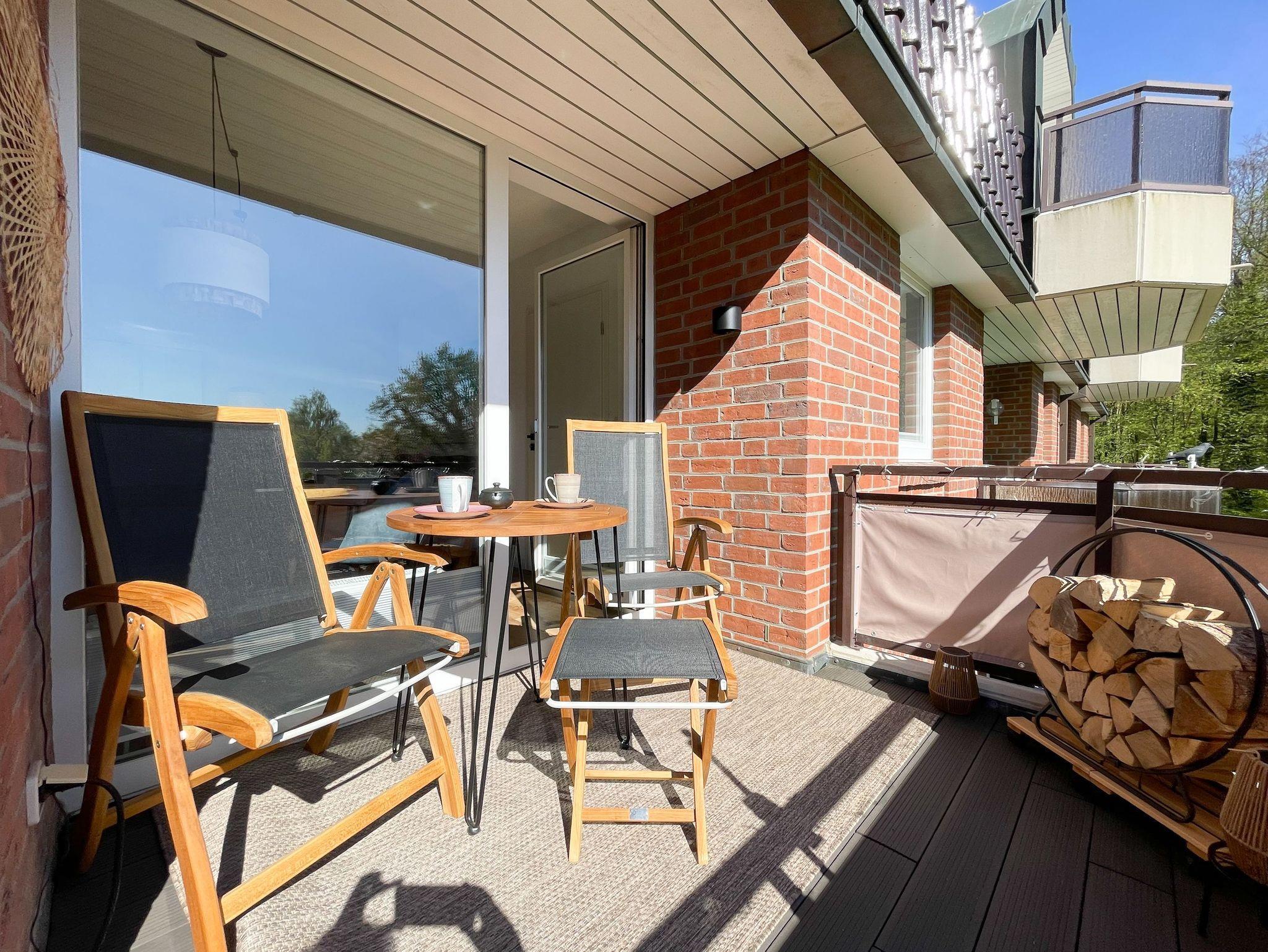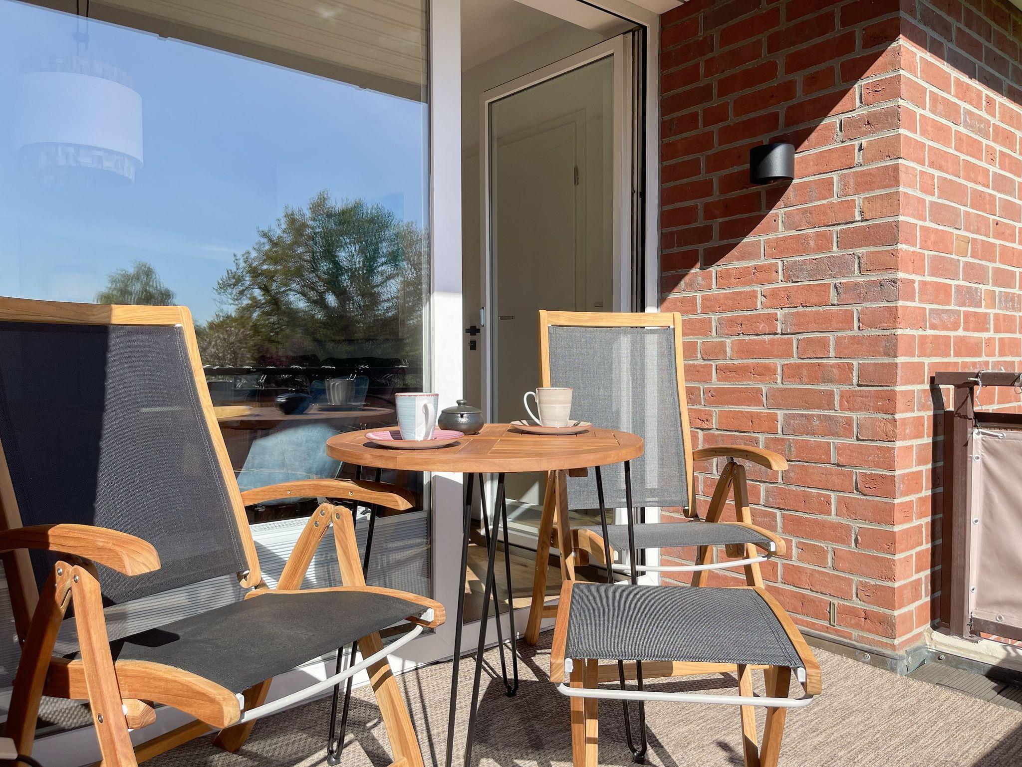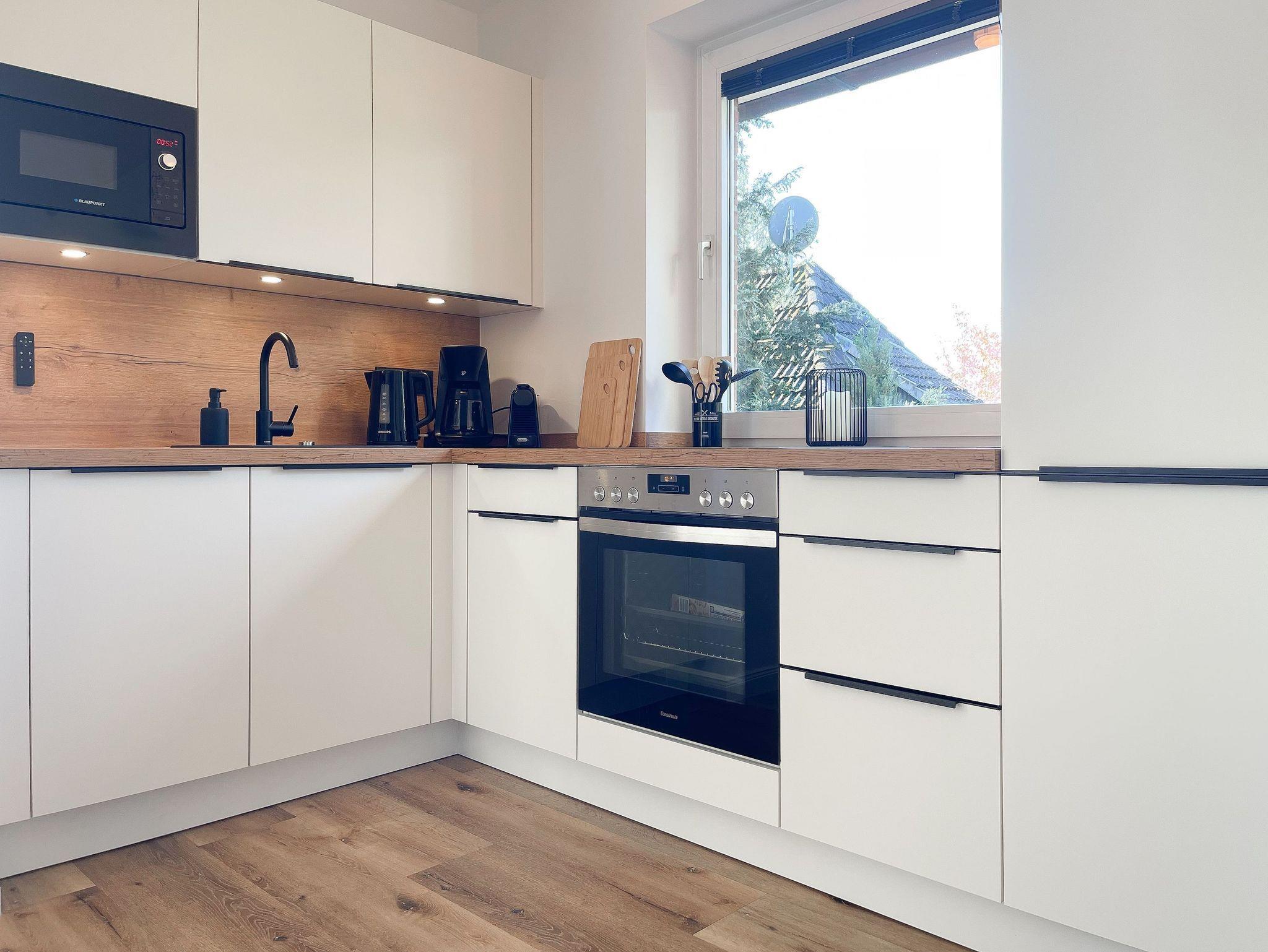 Es erwartet Sie eine hochwertig eingerichtete und bestens ausgestattete Ferienwohnung in der 1. Etage, die perfekt für 2 Personen geeignet ist, um den wohlverdienten Urlaub in einem schönen Ambiente zu verbringen. Der hyggelige Wohnbereich, eingerichtet mit einem Schlafsofa, Smart-TV und Bluetooth-Radio, vermittelt Gemütlichkeit und Wohlbefinden. Der anschließende Essbereich bietet ausreichend Platz und die offene neue Einbauküche in perfekter Ausstattung fügt sich wunderbar in den Wohnraum ein. Sie verfügt unter anderem über Spülmaschine, Backofen, Mikrowelle, Induktionsherd, Gefriermöglichkeit und vieles mehr. Verbringen Sie entspannte Stunden bei Sonnenschein von morgens bis zum frühen Nachmittag auf dem überdachten Balkon, ausgestattet mit Sonnenstühlen und Outdoortisch. Das Schlafzimmer ist mit einem Boxspringbett (180x200)[nbsp] und einem weiteren Smart-TV eingerichtet. Das Fenster ist mit Blackout Plissees zur vollständigen Verdunkelung versehen. Ausreichend Schrankfläche befindet sich im Wohnbereich. Das neue Duschbad ist modern und edel. WLAN steht selbstverständlich zur Verfügung.