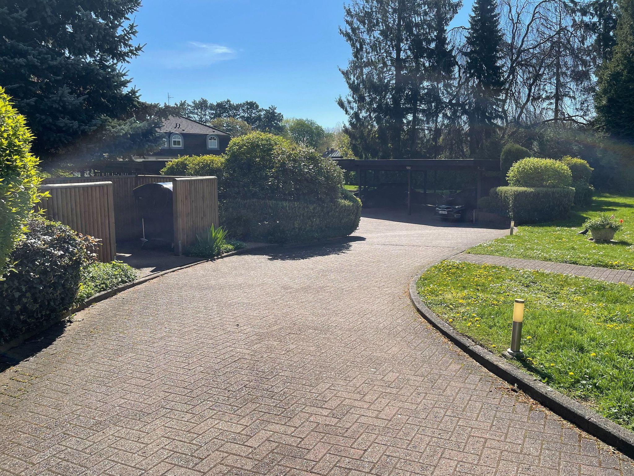 Ein fester Außenstellplatz (Carport) befindet sich auf dem Grundstück. Fahrräder können mit im Carport abgestellt werden, sofern es die Größe des Autos zuläßt oder im privaten Kellerraum, der über eine kurze Treppe (7 Stufen) zu erreichen ist. Waschmaschine und Trockner (Münzgeräte) stehen zur gemeinschaftlichen Nutzung zur Verfügung. Ein Fahrstuhl ist nicht vorhanden.