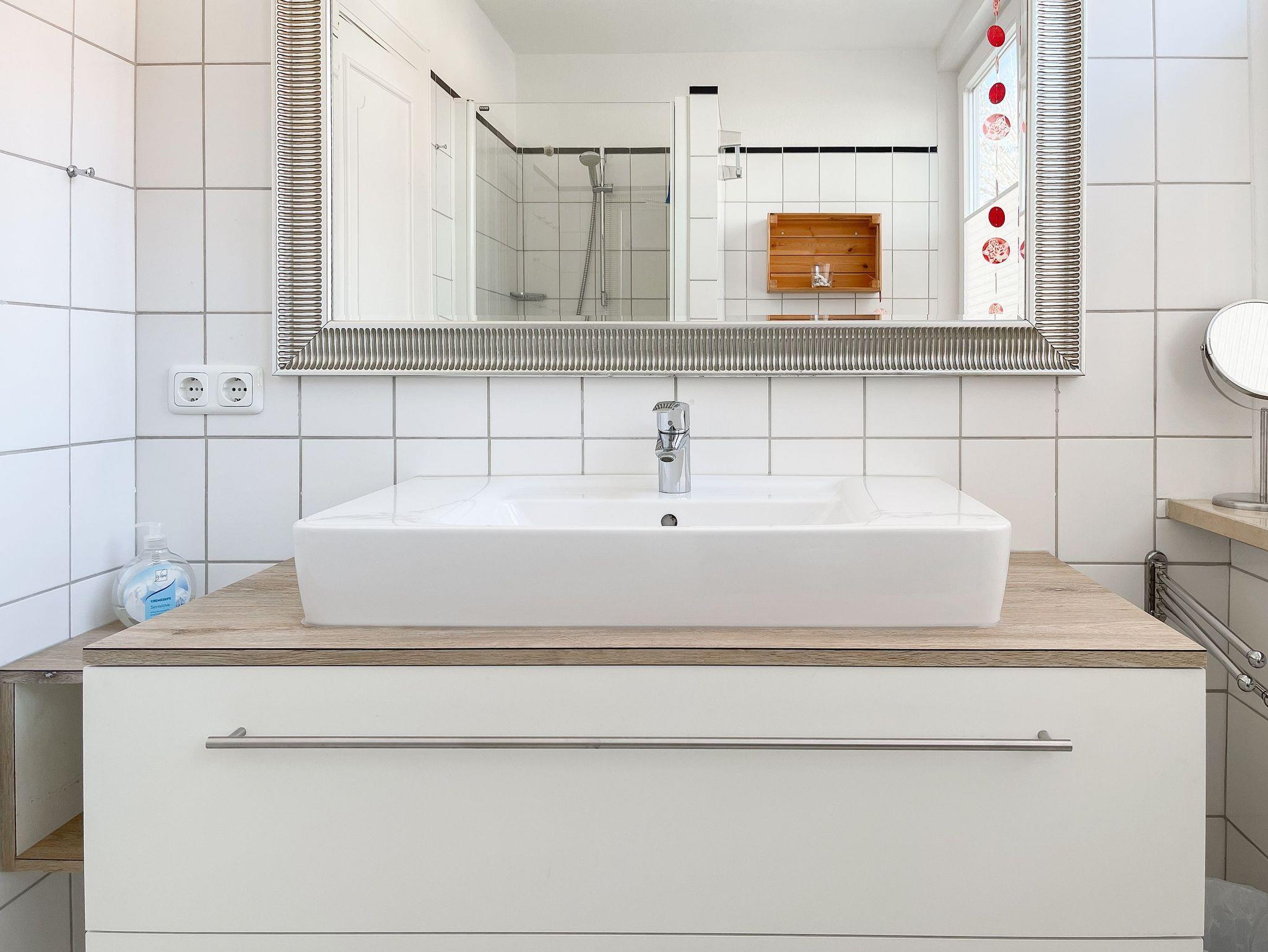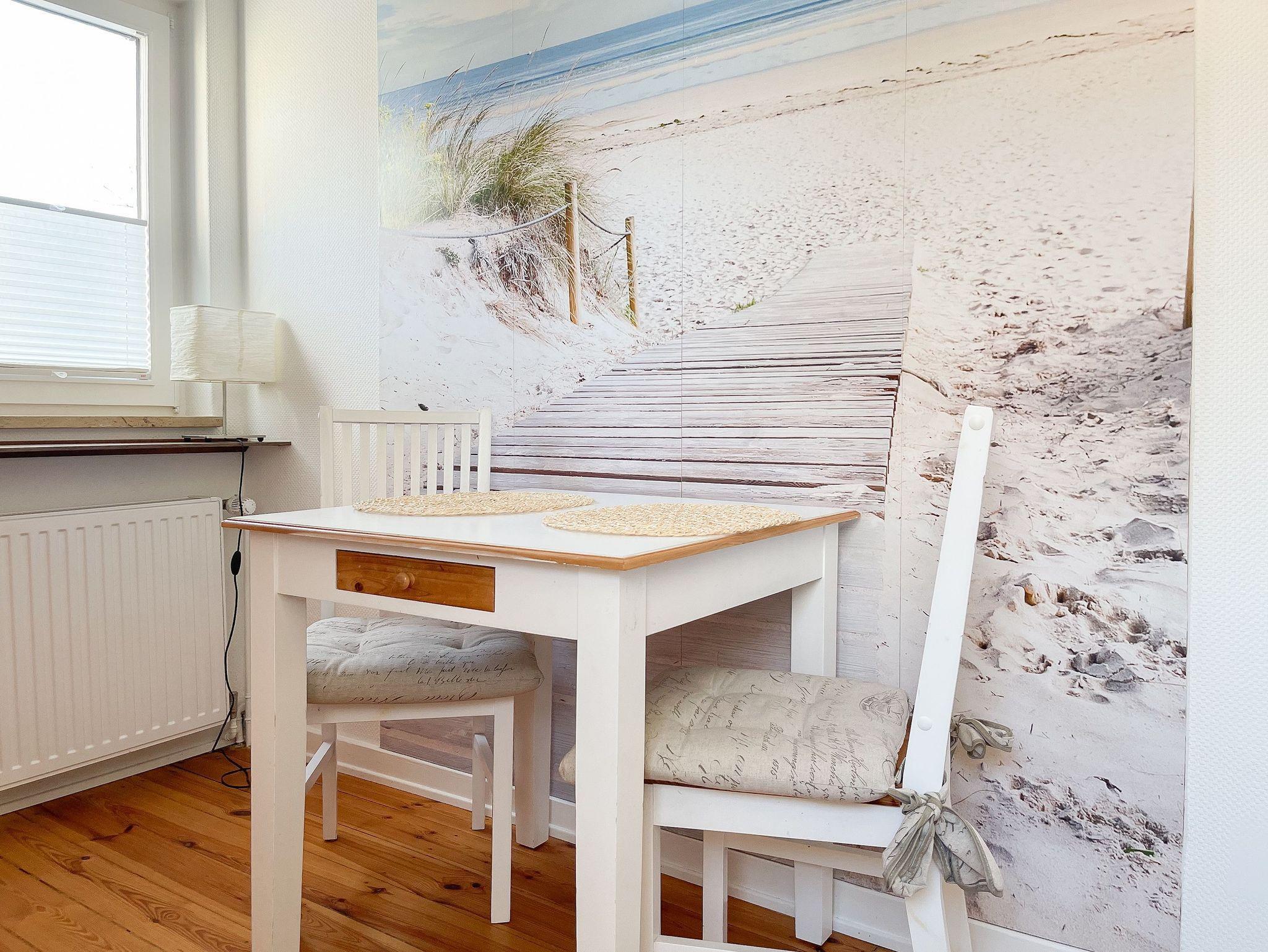 Die Wohnung verfügt über ein großzügiges Schlafzimmer mit Boxspringbett (180x200) und TV, ein helles Duschbad mit viel Tageslicht und ein gemütliches Wohnzimmer mit Schlafsofa (140x200), TV,[nbsp] Bluetoothanlage und WLAN. Die gesamte Einrichtung ist hochwertig und vermittelt eine tolle Strandatmosphäre. Die separate, neue Küche mit Essbereich für 2 - 4 Personen, ist bestens ausgestattet mit Spülmaschine, Backofen und Mikrowelle.