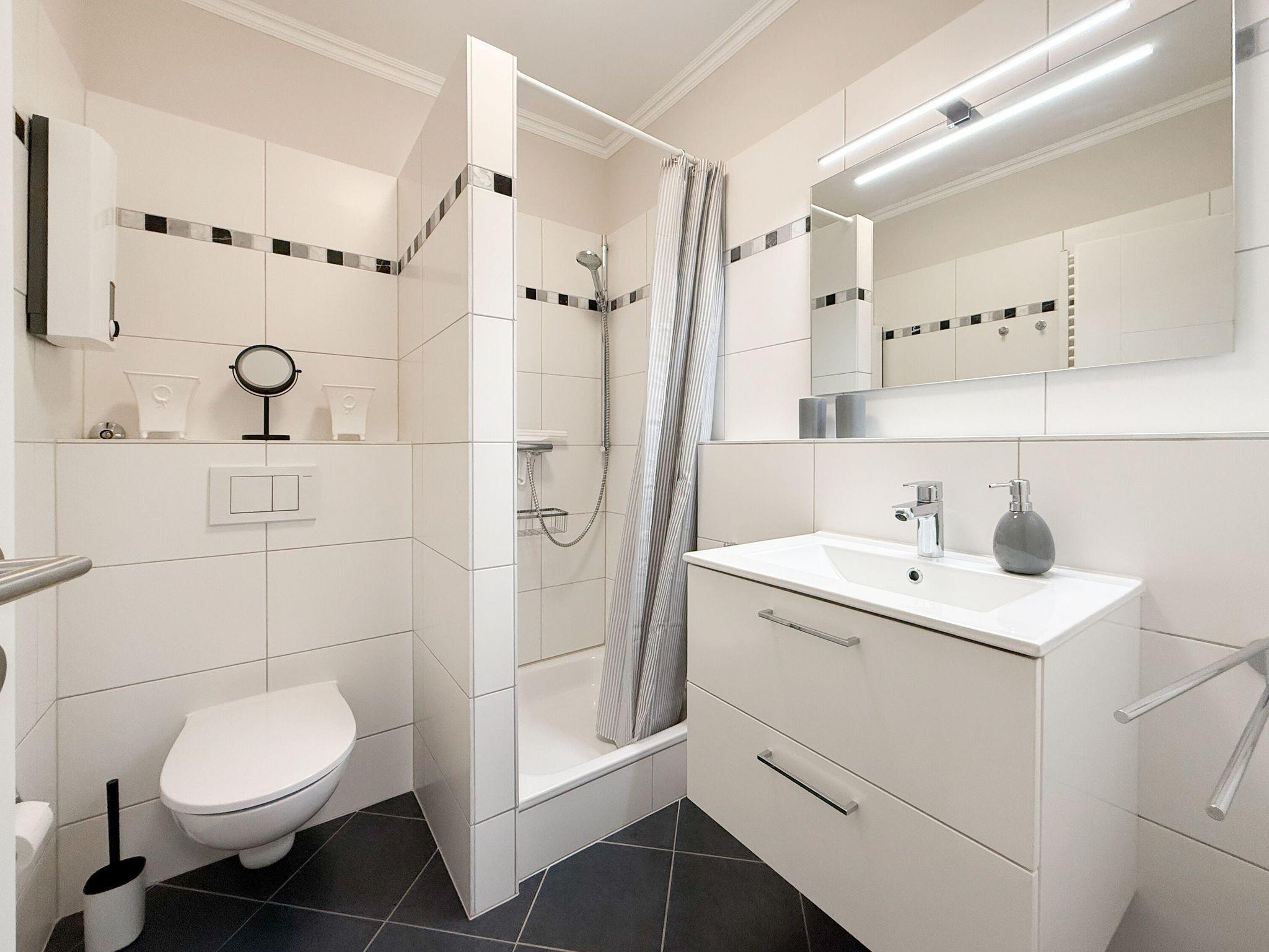 Kostenloser Internetzugang über WLAN steht selbstverständlich zur Verfügung. Ein Tiefgaragenstellplatz (Einfahrtshöhe 1,80m) ist inklusive. Fest verankerte Fahrradständer befinden sich direkt vor dem Haus. Waschmaschine und Trockner (Münzgeräte) befinden sich im Gemeinschaftskeller.