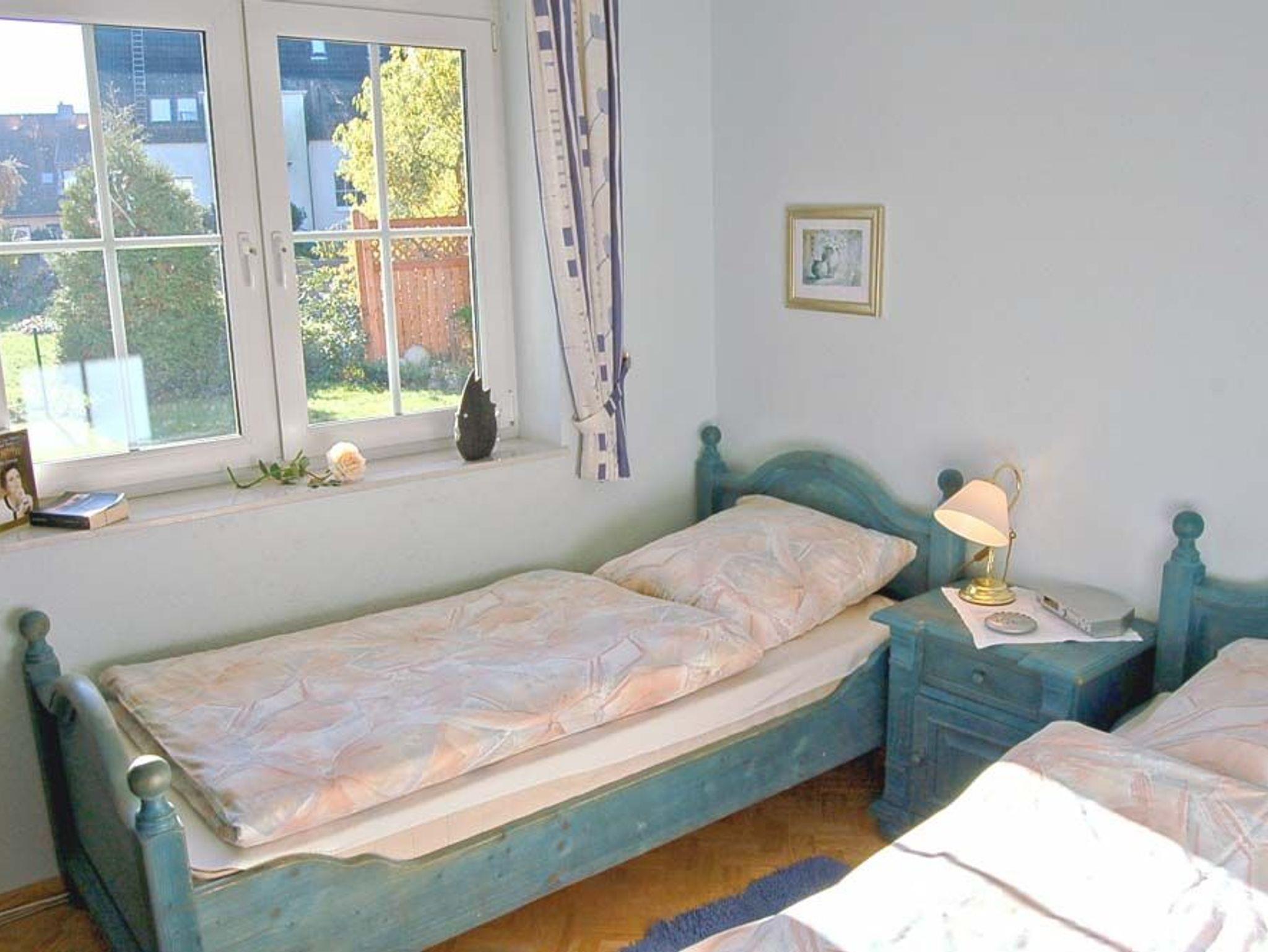 Schlafzimmer 1: 2 Einzelbetten, 2 Stühle, DVD-Player, elektrische Aussenrollladen, Kabel-TV, Kleiderschrank, Nachttisch, Radiowecker