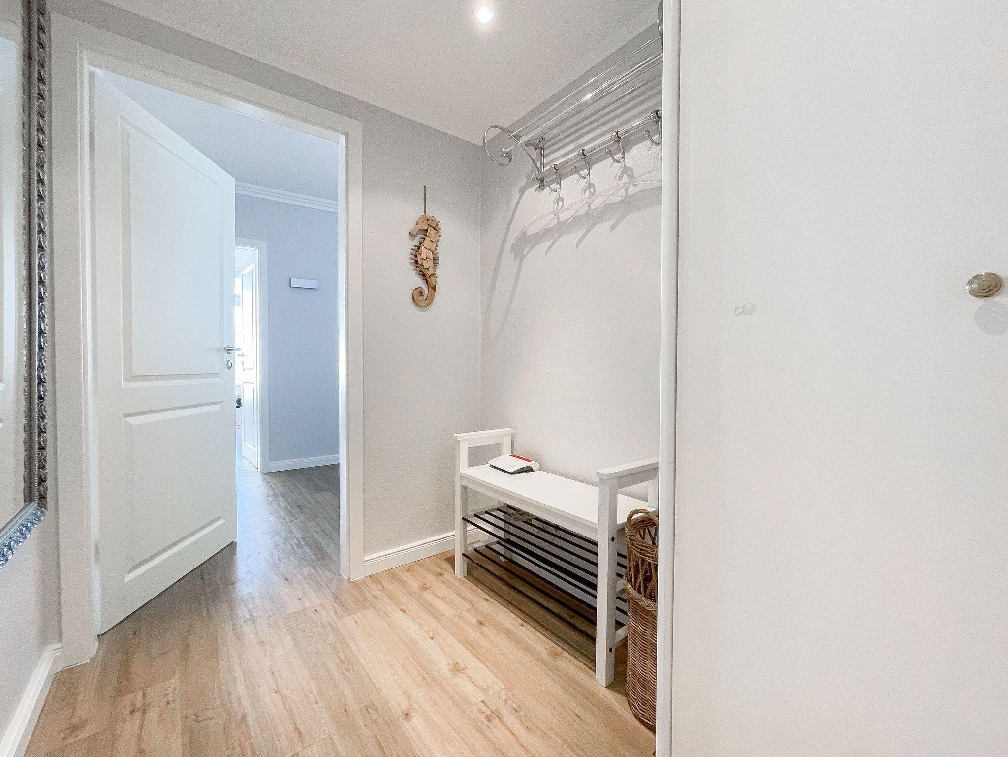 Die Ferienwohnung Traumblick bietet auf 75 qm hohen Wohnkomfort mit einer traumhaften Aussicht über die gesamte Lübecker Bucht. Der weitläufige Sonnenbalkon[nbsp] ist mit Gartenmöbeln, Sonnenstühlen und einer Markise ausgestattet und sowohl vom Wohnbereich als auch vom Schlafzimmer zu erreichen. Genießen Sie tagsüber das traumhafte Meerblickpanorama aus nahezu jedem Raum und bei Dunkelheit die besondere Atmosphäre der beleuchteten Lübecker Bucht. Der großzügige Wohn- Essbereich verfügt neben dem phantastischen Meerblick über eine hochwertige Einrichtung. Es steht ein gemütliches XL Sofa, TV und WLAN zur Verfügung sowie ein integriertes Schrankbett (160x200). Der anschließende Essbereich bietet ausreichend Platz für 4 Personen und die offene Einbauküche ist bestens ausgestattet. Das geräumige Schlafzimmer bietet ebenfalls einen wunderschönen Meerblick und ist mit einem Boxspringbett (180x200), einem weiteren TV sowie einem Kleiderschrank eingerichtet, der ausreichend Stauraum für die Urlaubsgarderobe bietet. Das moderne Bad verfügt über Waschtisch, Dusche und WC.