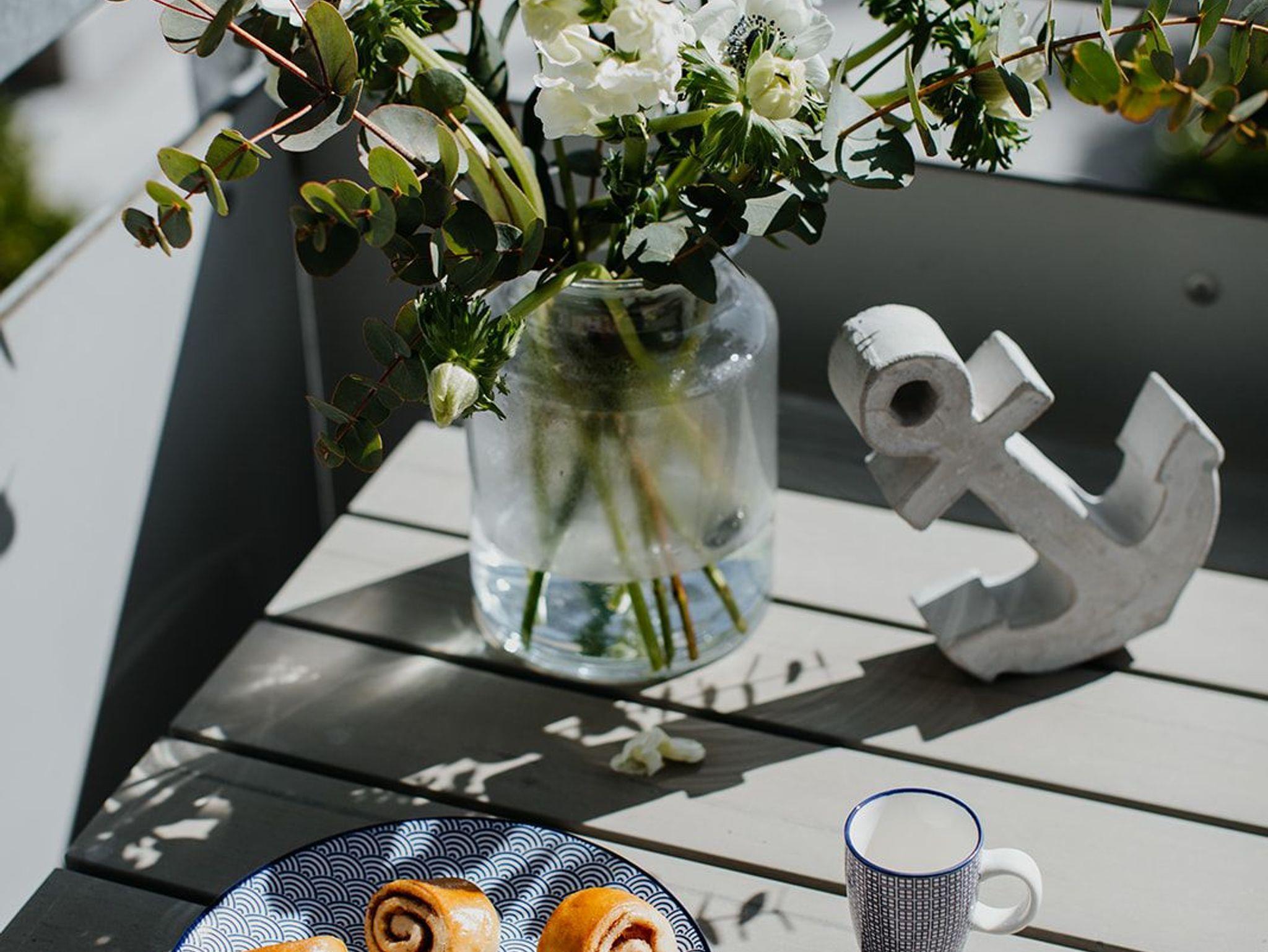 Klein aber fein, hell und freundlich und gespickt mit vielen liebevollen Details präsentiert sich die Ferienwohnung No. 188. Jeder qm ist optimal genutzt und mit ausreichend Ablageflächen, Stauraum und Haken versehen. Es gibt zwei separate Schlafzimmer, ausgestattet mit Doppelbett (180x200), Einzelbett mit Auszug (160x200), Verdunkelungsvorhängen und TV. Strandflair pur ist im Wohnbereich zu finden, der mit einem Sofa und einem Essbereich für 4 Personen ausgestattet ist. Die integrierte kleine Einbauküche fügt sich wunderbar ein und ist bestens ausgestattet. Vom vorgelagerten Sonnenbalkon mit elektrischer Markise und Gartenmöbeln kann man die Ostsee nicht nur hören sondern auch blitzen sehen.