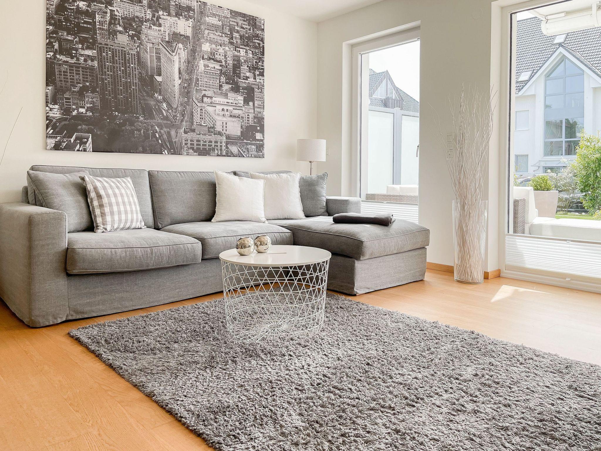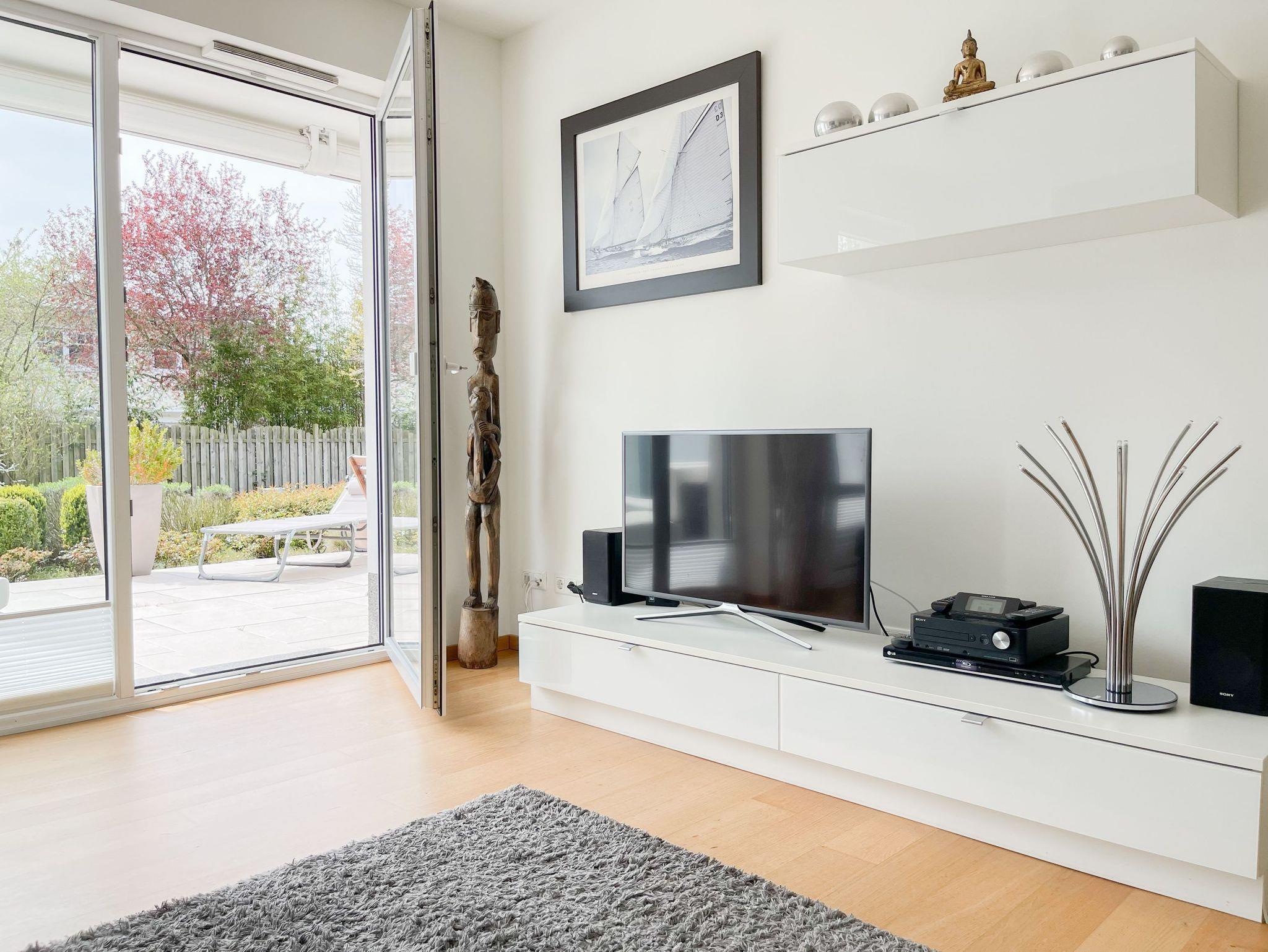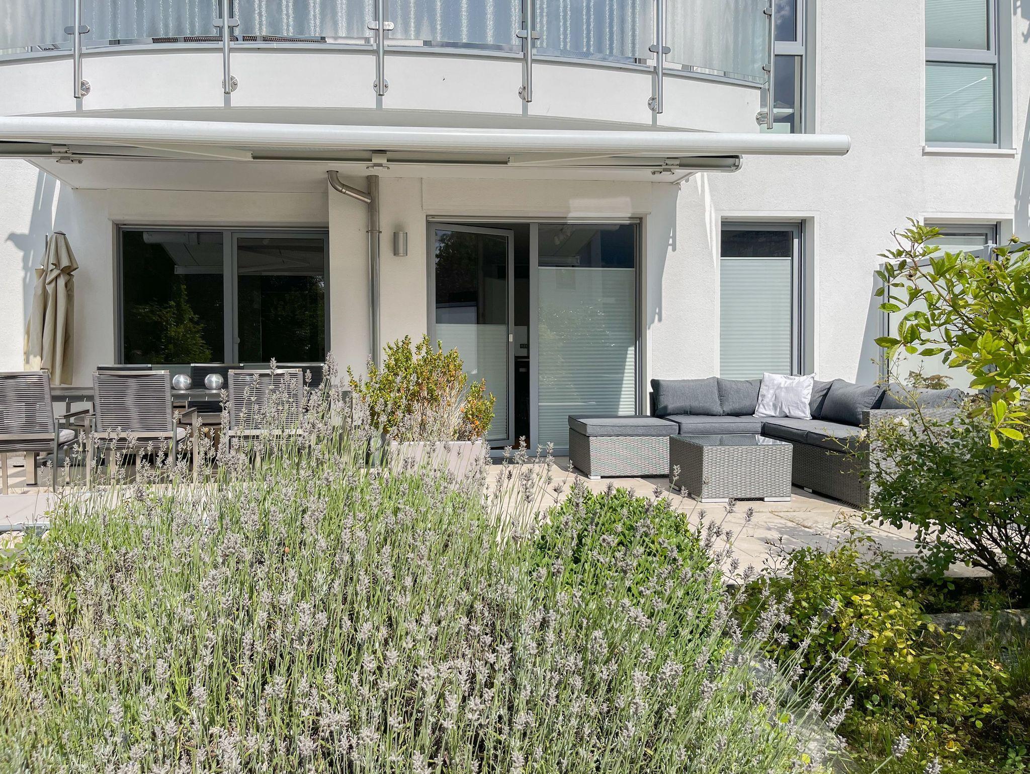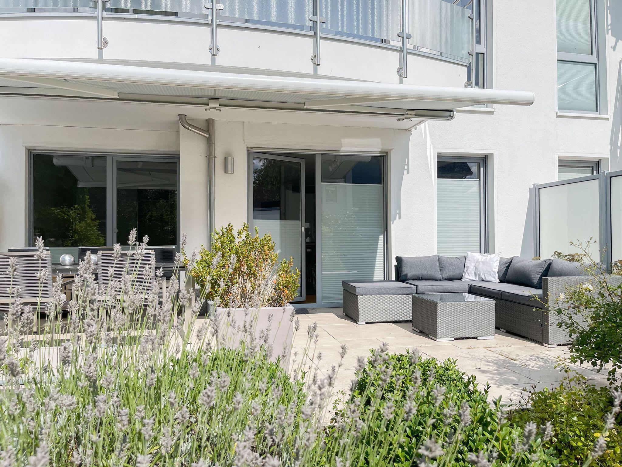 Die Wohnung ist komplett mit Echtholzparkett und Fußbodenheizung ausgestattet. Sie verfügt über einen hellen, freundlichen Wohnraum mit gemütlicher Sitzecke, TV, Radio und WLAN sowie einer offenen, gut ausgestatteten Küche mit angrenzendem Essbereich. Ein Schlafzimmer mit Doppelbett sowie ein weiteres, kleines, innenliegendes Schlafzimmer mit Etagenbett stehen zur Verfügung. Das Bad ist modern und luxuriös. Die 30 qm große Terrasse ist zum Süden ausgerichtet und mit gemütlichen Lounge Möbeln und Essbereich ausgestattet und verfügt über eine elektrische Markise. Sämtliche Fenster sind bodentief und mit elektrischen Außenjalousien versehen. Ein PKW Stellplatz befindet sich in der hauseigenen Tiefgarage.