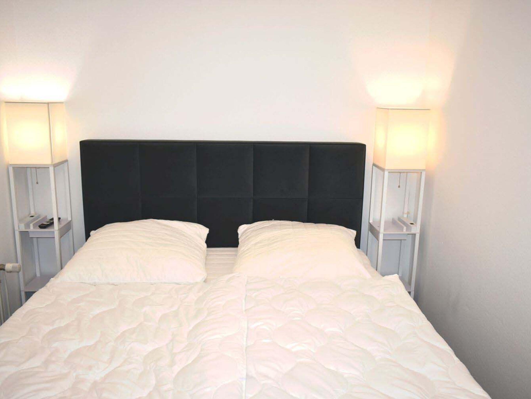Schlafzimmer 1: 2 Nachttische mit USB-Stecker, Boxspringbett 2,00 x 1,80 m, 1 Matratze, Flachbildschirm, Kabel-TV, Kleiderschrank, Verdunklungsplissee