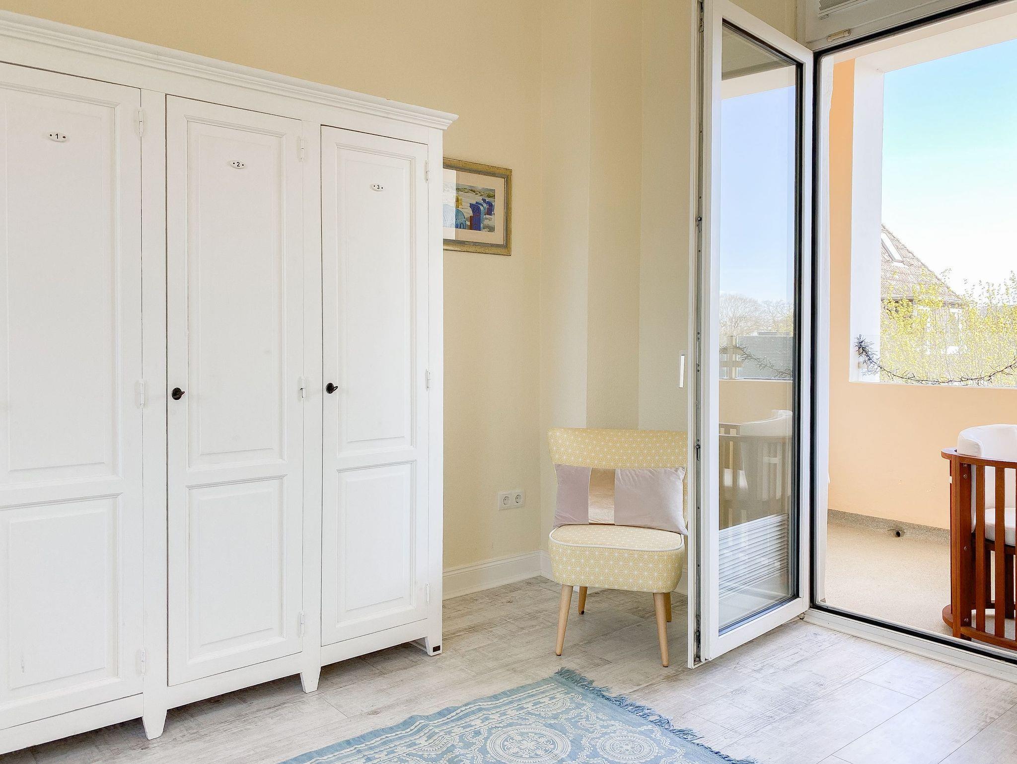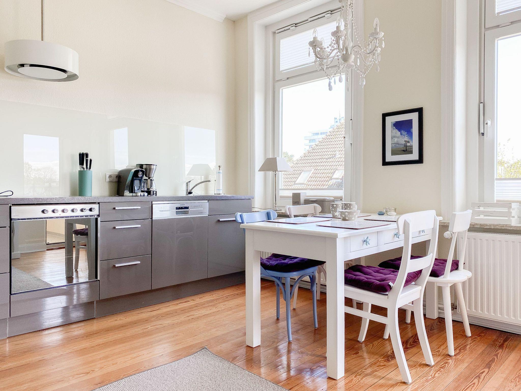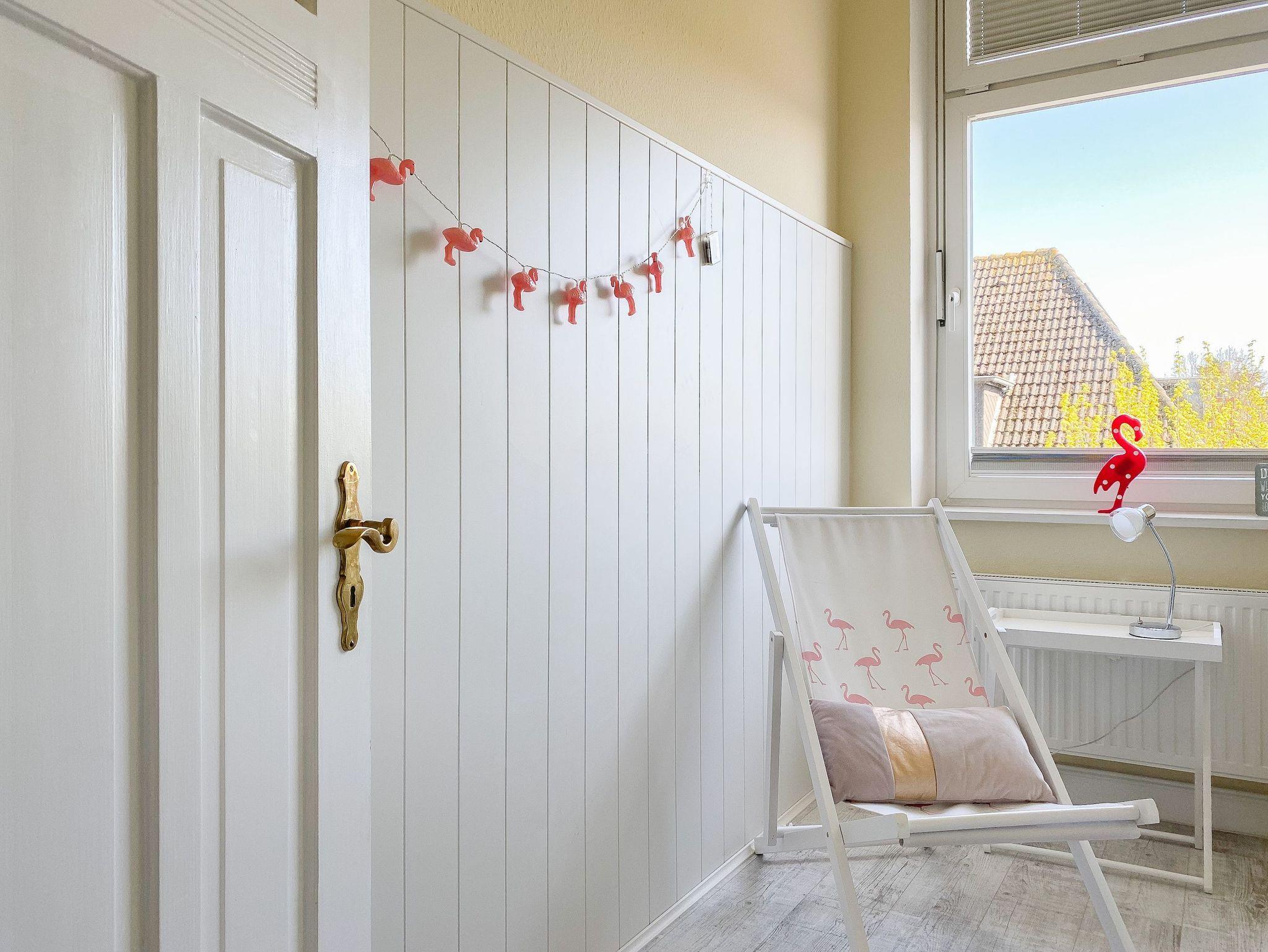 Die charmante Ferienwohnung im 3. OG wurde mit viel Liebe zum Detail saniert und eingerichtet. Die hohen Decken und großen Fenster schaffen eine helle, besondere Wohnatmosphäre. Ankommen und wohl fühlen! Die Wohnung verfügt über ein großes Schlafzimmer mit Doppelbett (180x200), TV und Zugang zur Loggia, über ein kleineres Schlafzimmer mit Einzelbett, das sich zu einem Doppelbett von 160x200 ausziehen lässt sowie ein[nbsp] hochwertiges, großes Duschbad mit viel Tageslicht. Das Zentrum[nbsp] bildet der Wohnbereich, ausgestattet mit einem gemütlichen Sofa , TV und kostenlosem Internetzugang über WLAN, die moderne Einbauküche mit allen notwendigen technischen Geräten und der Essbereich. Von hier ist auch die sonnige, geschützte Loggia zu betreten, die bei Sonne, Wind und Wetter zum Entspannen einlädt.