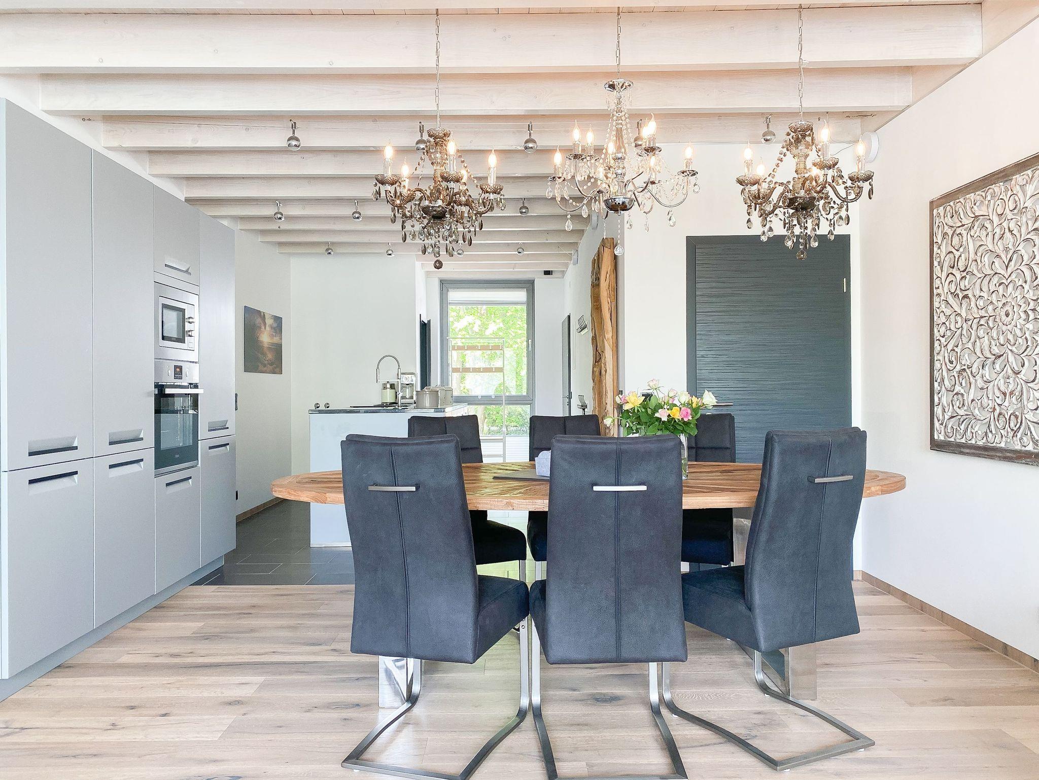Die Ferienwohnung Meerchenwald 3 befindet sich im 1. Obergeschoss und verfügt über 3 separate Schlafzimmer mit elektromotorisch verstellbaren Boxspringbetten (180x200), Verdunkelungsplissees und TV, zwei moderne Duschbäder en Suite sowie ein zusätzliches Gäste WC im Eingangsbereich. Im Flur bietet ein großer Einbauschrank ausreichend Stauraum für Ihre Urlaubsgarderobe. Bitte beachten Sie, dass im kleinen Schlafzimmer das Bett nur über das Fußende zu erreichen ist. Der großzügige Wohnbereich mit riesigen Glasfronten zum Südbalkon verfügt über 2 hochwertige Sofas, TV, DVD-Player und Surround Anlage. Selbstverständlich steht Ihnen WLAN zur kostenlosen Nutzung zur Verfügung. Der anschließende Essbereich ist für 6 Personen eingerichtet und die perfekt ausgestattete, hochmoderne Wohnküche lässt garantiert keine Wünsche offen.
