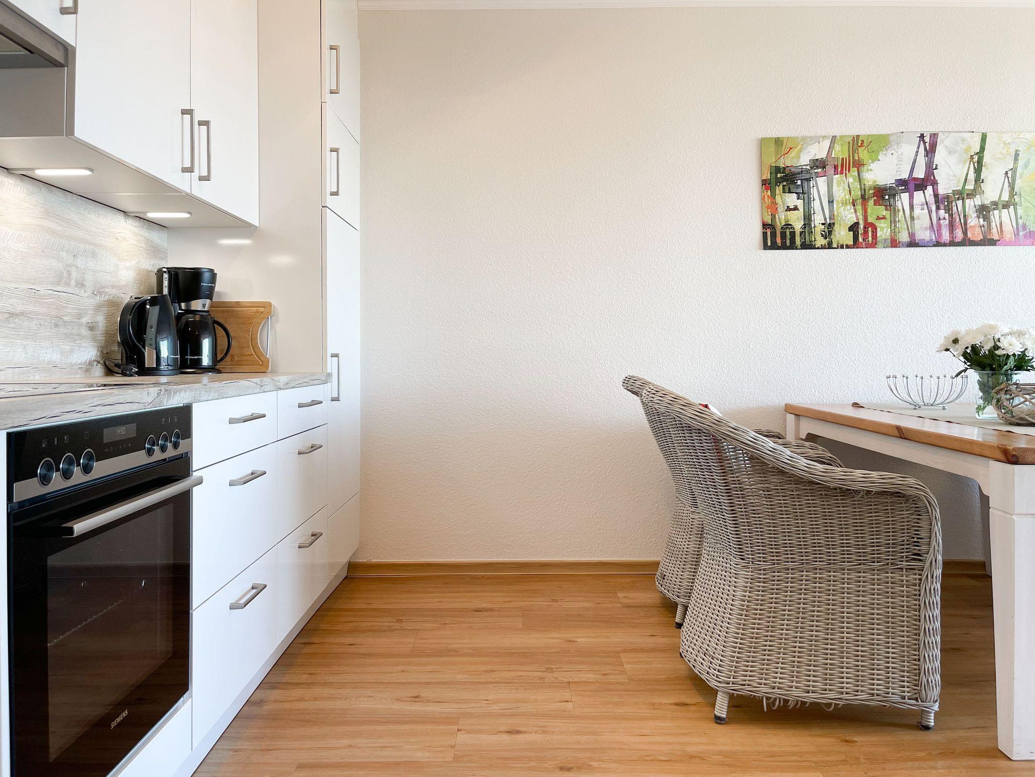 Die Ferienwohnung Plaza Panorama bietet auf 71 qm hohen Wohnkomfort mit einem herrlichen Ausblick. Der Sonnenbalkon in Südwest Ausrichtung ist mit Gartenmöbeln, Sonnenstühlen und einer elektrischen Markise ausgestattet und sowohl vom Wohnbereich als auch vom Schlafzimmer zu erreichen. Lassen Sie den Abend bei einem Glas Wein ausklingen und genießen sensationelle Sonnenuntergänge. Der großzügige Wohn- Essbereich verfügt neben dem herrlichen Weitblick über eine gemütliche Einrichtung. Es steht ein wertiges Schlafsofa (160x200), TV und WLAN zur Verfügung. Der anschließende Essbereich bietet ausreichend Platz für 4 Personen und die offene Einbauküche ist bestens ausgestattet. Das Schlafzimmer bietet ebenfalls einen wunderschönen Ausblick und ist mit einem Doppelbett (180x200), einem weiteren TV sowie einer Kommode eingerichtet. In einem separaten Raum neben dem Schlafzimmer ist ein geräumiger Kleiderschrank untergebracht, der ausreichend Stauraum für die Urlaubsgarderobe bietet.[nbsp] Das moderne Bad verfügt über Waschtisch, Dusche und WC. Ein fester PKW Stellplatz in der Hotelgarage (Einfahrtshöhe 1,90/nicht geeignet für große SUV/kein Aufzug) ist inklusive. Bei Verlust der Parkkarte ist Ersatz zu leisten. Ein Fahrstuhl im Gebäude ist vorhanden.