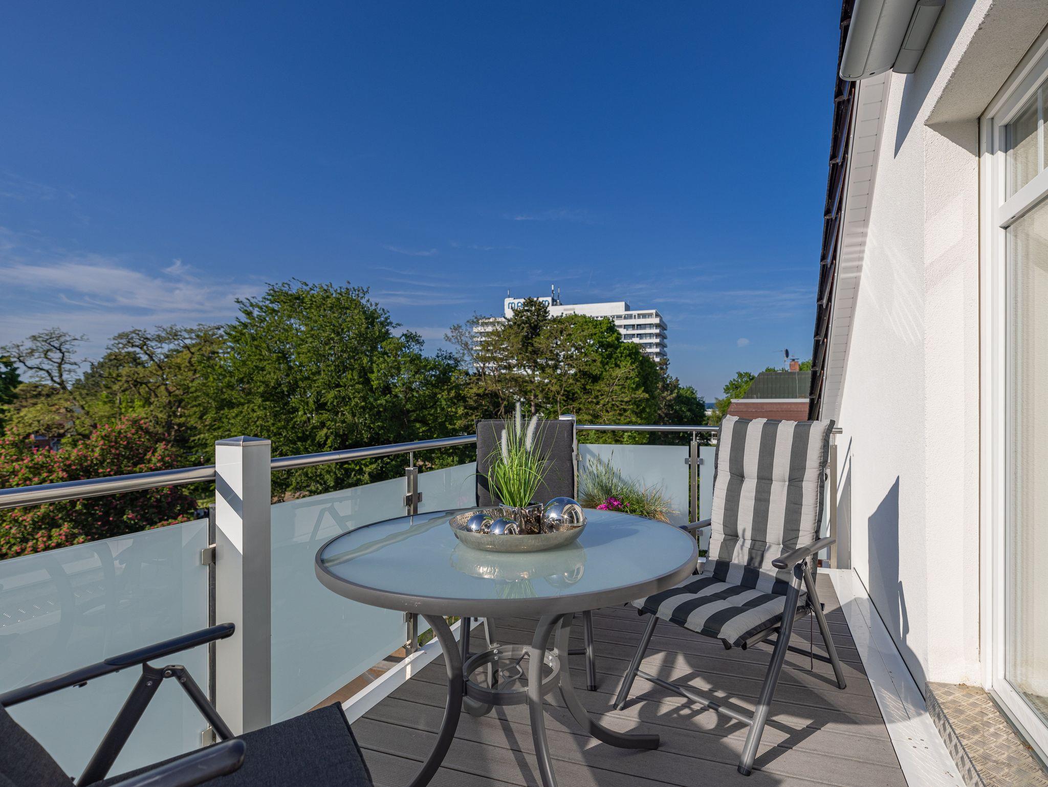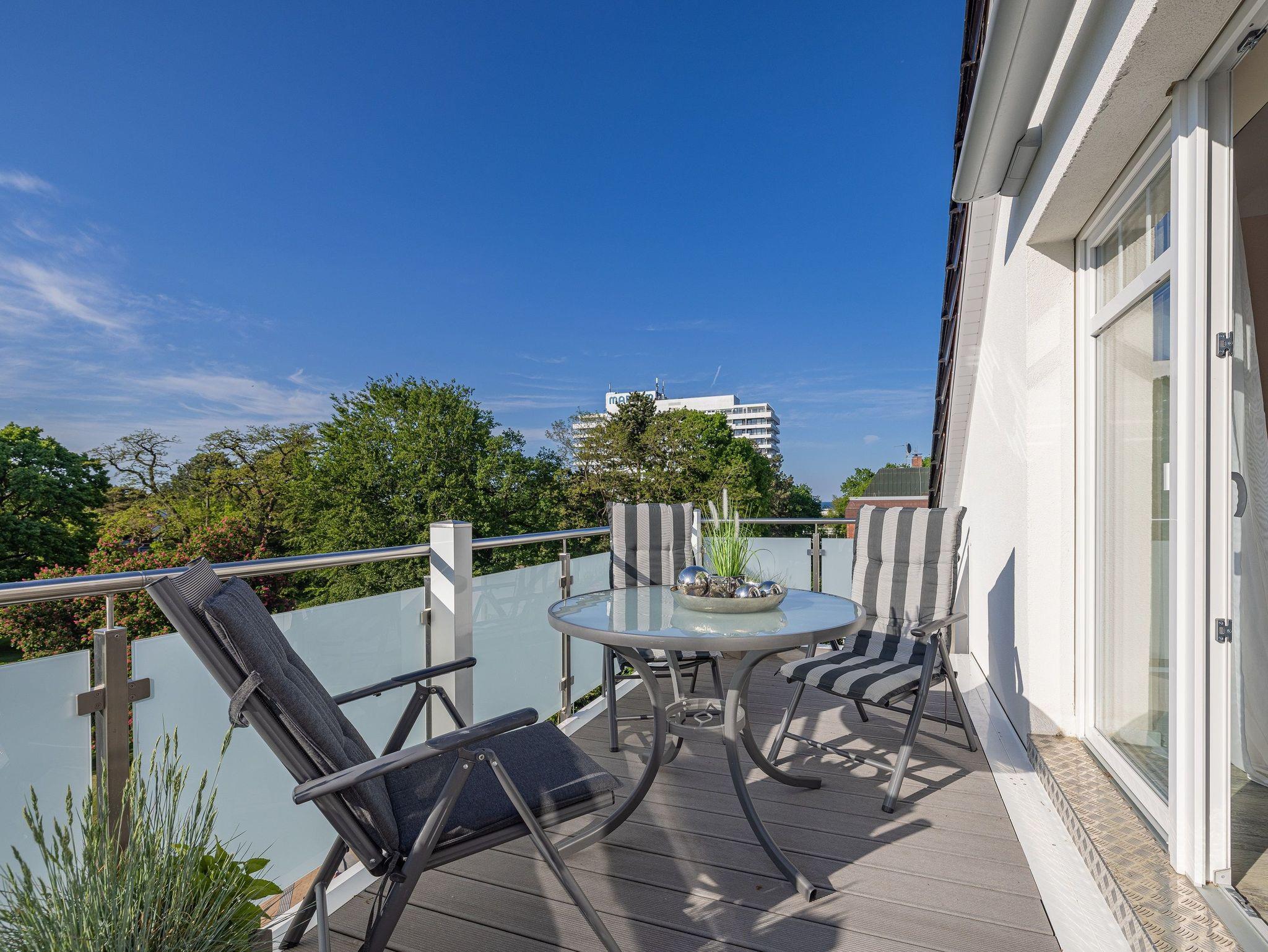 Modernes Ferienapartment mit Balkon und Meerblick in Timmendorfer Strand, nur 150 m vom Sandstrand entfernt.