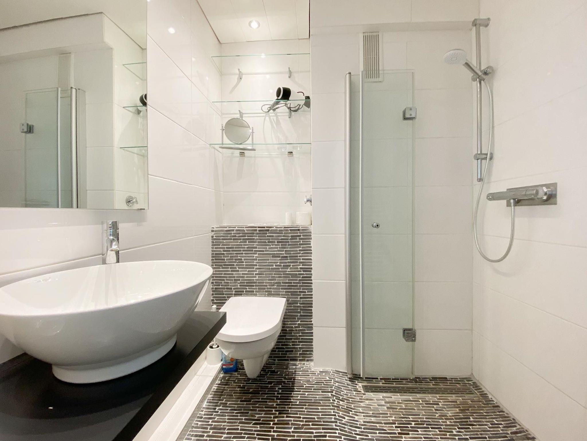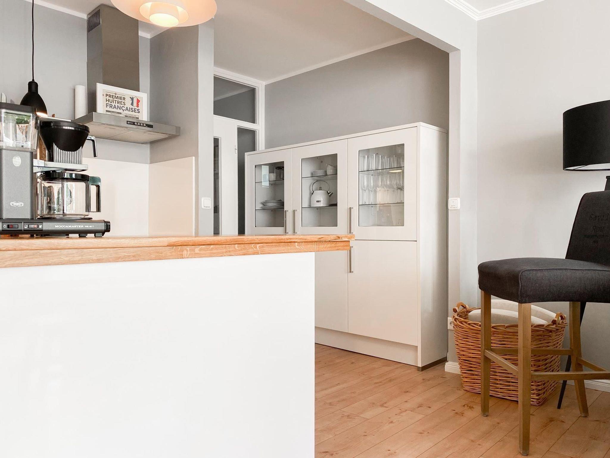 Die Ferienwohnung liegt im 1. Obergeschoss einer terrassenförmigen Wohnanlage zur lichtdurchfluteten Südseite. Der äußerst großzügig angelegte Sonnenbalkon, ausgestattet mit Gartenmöbeln, Sonnenliegen und Markise, ist ein besonderes Highlight. Die Freibeuter-Höhle besticht durch ihr offenes Raumkonzept mit vielen liebevollen Details und lädt 2 bis 3 Personen zum Wohlfühlen in Strandnähe ein. Es erwartet Sie ein heller, freundlicher Wohnraum mit bodentiefen Fensterflächen, geschmackvoll gestaltet und hochwertig eingerichtet mit einem Schlafsofa (140x200), TV, Hifi Anlage und einem Essbereich für 3 Personen. WLAN steht selbstverständlich zur kostenlosen Nutzung zur Verfügung. Die integrierte Küche ist bestens ausgestattet, unter anderem mit Spülmaschine, Backofen und Induktionskochfeld. Im separaten Schlafzimmer befinden sich neben einem hochwertigen Boxspringdoppelbett (160x200) und einem Kleiderschrank auch ein kleiner Schreibtisch. Es gibt ein kleines Bad mit Walk In Dusche. Die Freibeuter-Höhle liegt direkt neben dem kleinen Strandräuber, ideal zum Urlauben unter Freunden, ganz nah beieinander mit Privatsphäre.