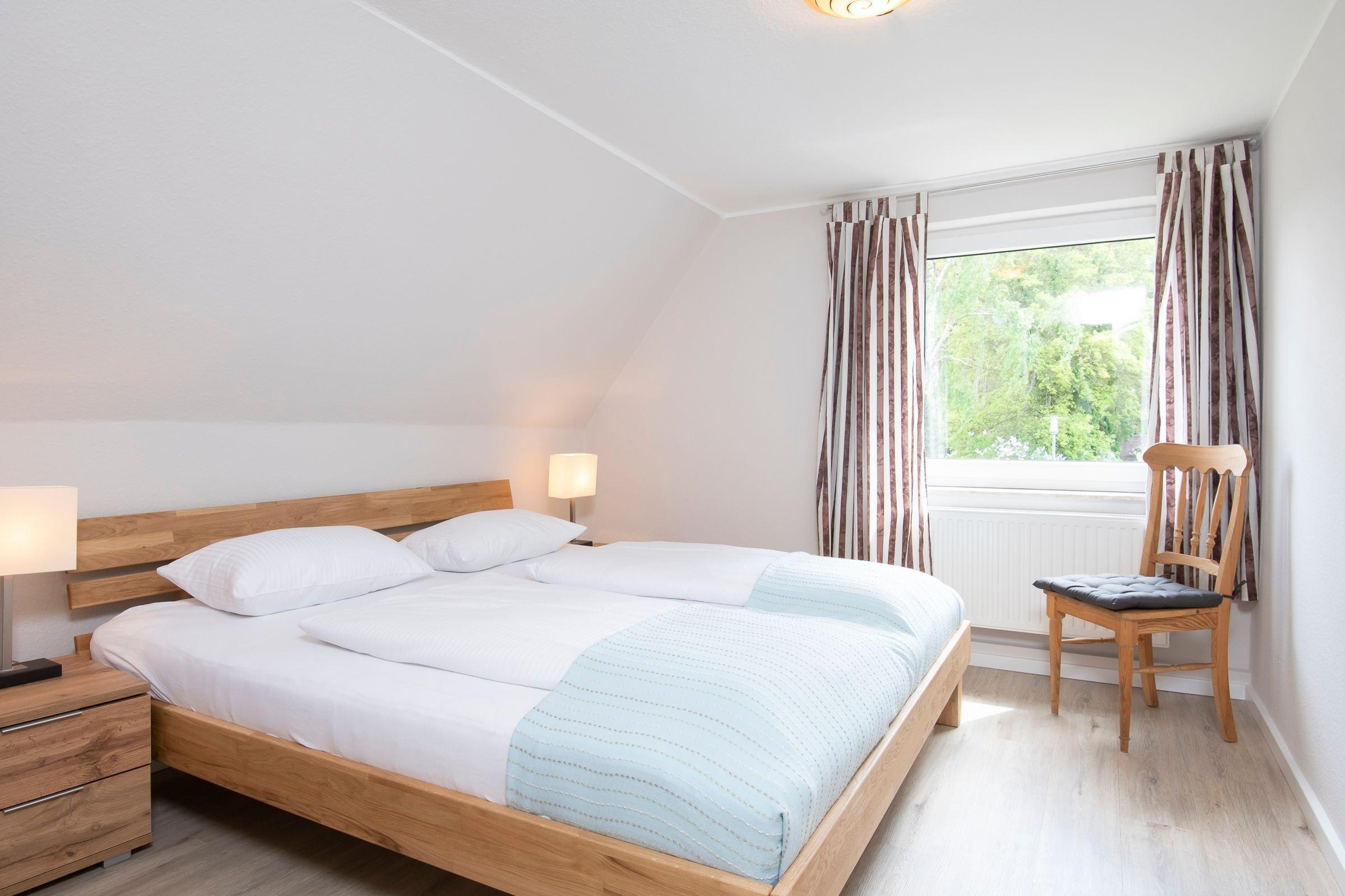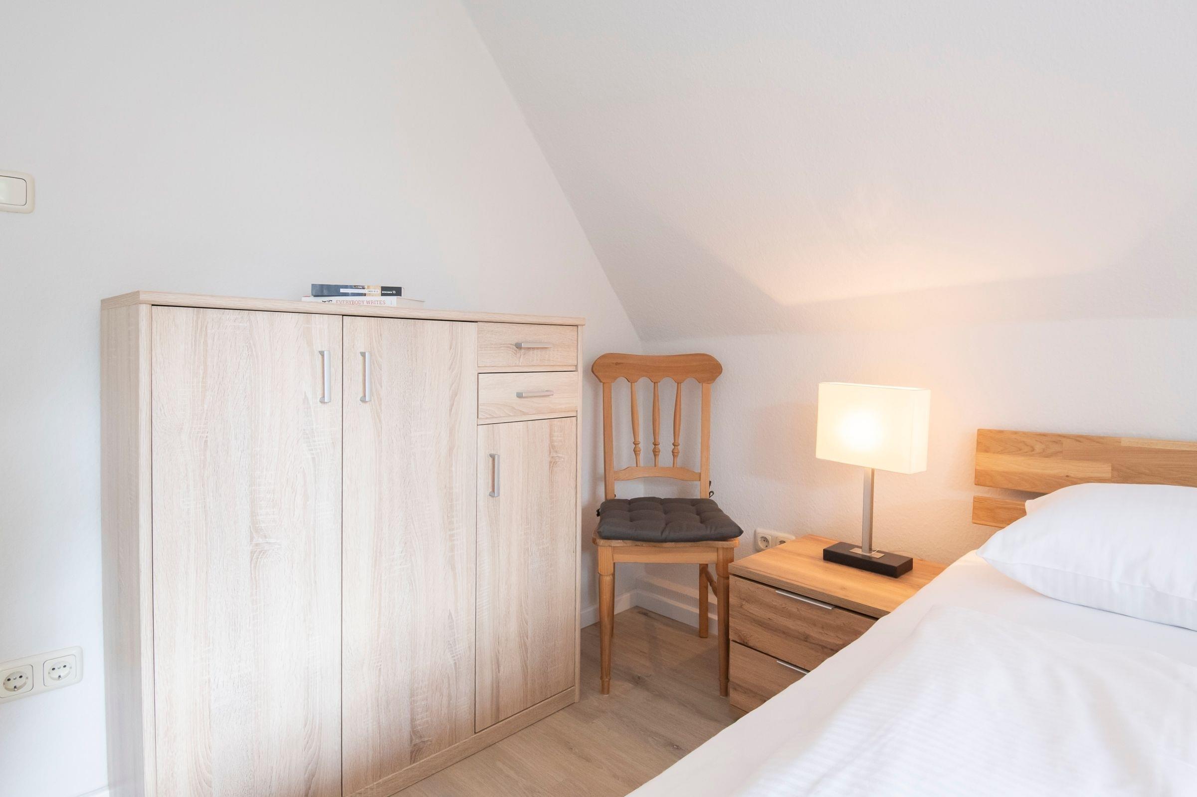 Schlafzimmer 1: 1 Doppelbett (180x200 cm), Kommode, Platz für Kinderbett