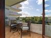Der Wohn- und Schlafbereich ist offen gestaltet und das große Doppelbett (180x200cm) verspricht erholsame Nächte nach langen Strandspaziergängen. Auf dem bequemen Sofa können Sie ein Glas Wein vor dem TV genießen, sollte es auf dem großen überdachten Balkon mal zu frisch werden. Aus der 7. Etage haben Sie einen traumhaften Blick über den angrenzenden Wald. Wenn Sie sich selbst verpflegen möchten, können Sie sich mühelos in der kleinen Küche etwas Leckeres zubereiten und am Esstisch gemeinsamen speisen. Ein Badezimmer mit Eckdusche und großem beleuchteten Spiegel rundet die Ausstattung dieses Feriendomizils ab.