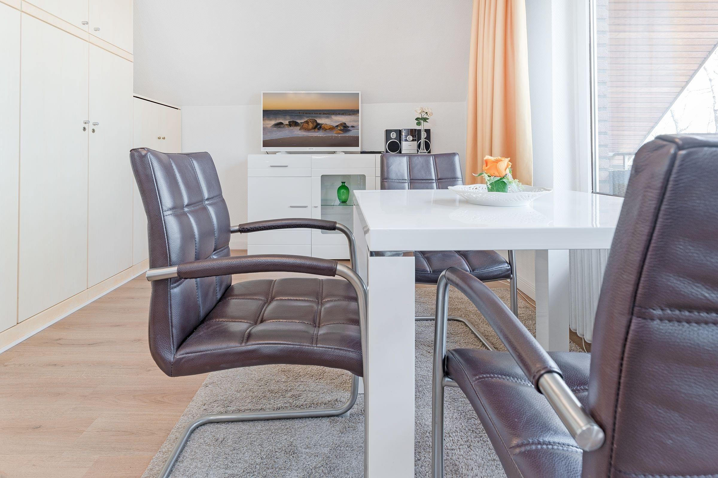 Nur 20 Meter zum Strand entfernt ... was für eine traumhafte Lage. Das kleine, feine Apartment in der Wohnanlage Haus Eva Mar am Meer verspricht Ihnen wunderbare Urlaubsmomente an der Ostsee – so oft und so lange Sie mögen. Insgesamt punktet das Domizil mit seiner durchdachten Aufteilung. Vom Wohn-/Schlafzimmer aus präsentiert sich ein sagenhaften Blick durch die große Fenster-Front mit einem saisonal bedingten Blick auf die Ostsee. Sowohl von der gemütlichen Sitz-Ecke aus als auch vom komfortablen Boxspringbett (180x200 cm) haben Sie eine tolle Sicht. Noch schöner wird es sicher auf dem möblierten Balkon. Dieser ist überdacht und ermöglicht es Ihnen auch dann gemütlich und geschützt zu sitzen, wenn das Wetter einmal nicht so mitspielen sollte. Stoßen Sie hier auf Ihre Auszeit an, Sie haben es sich verdient. Praktisch: Die separate Küche befindet sich im Flurbereich und nimmt nicht viel Platz weg, verfügt aber gleichzeitig über eine gute Ausstattung. Bereiten Sie hier Ihre Lieblingsspeisen zu und schlemmen Sie anschließen auf dem Balkon. Was will man mehr? Das helle Badezimmer verfügt über eine Badewanne und einen Handtuchwärmer.