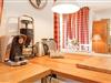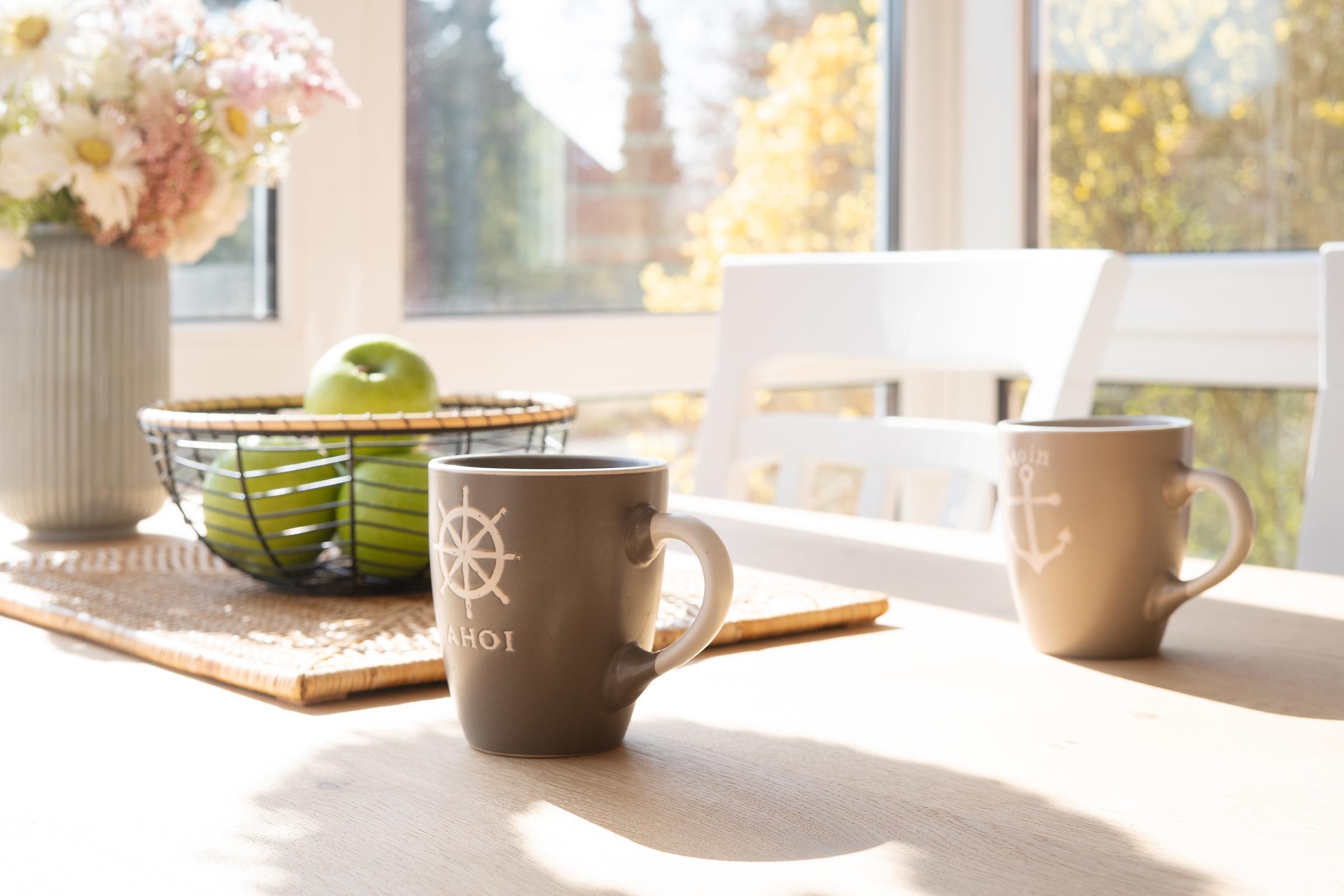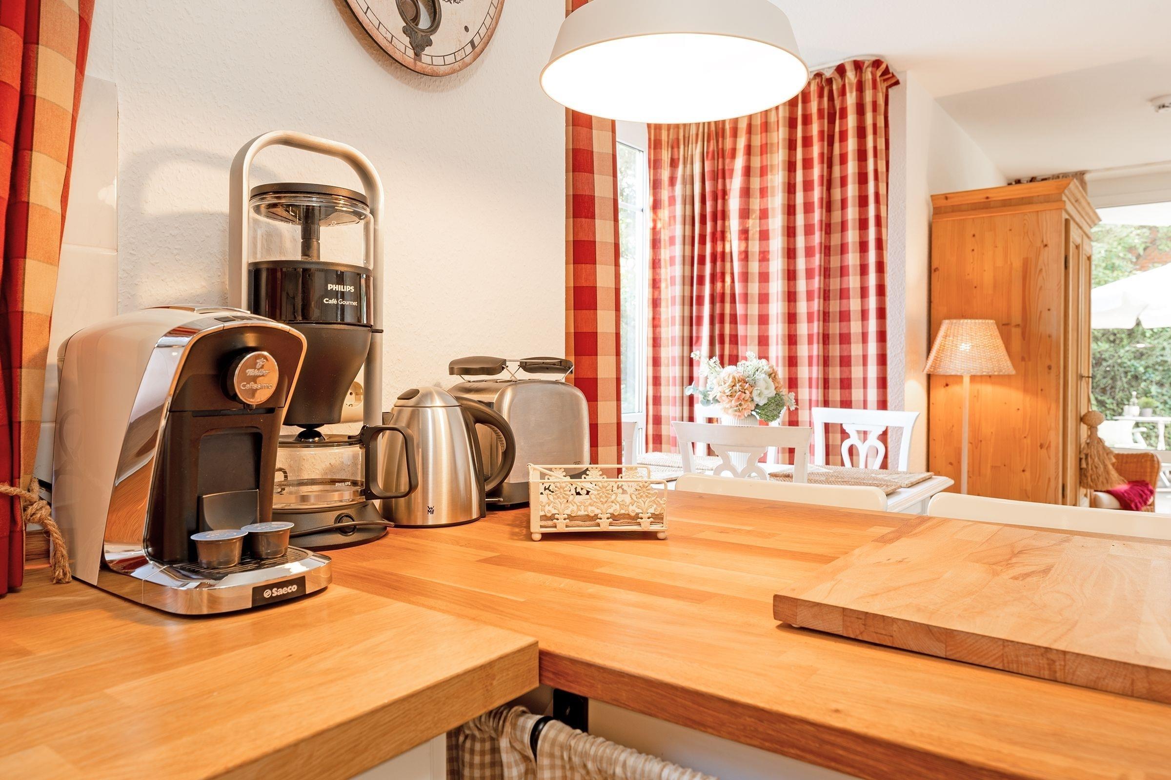 Zauberhaften Urlaub verspricht die Wohnung Zaubermuschel. Treten Sie ein, der freundliche Wohnbereich punktet durch seine geschmackvoll zusammengestellte Einrichtung mit Liebe zum Detail. Zwei große Fensterfronten lassen viel Licht hinein und sorgen für eine freundliche Atmosphäre. Abends können alle Fenster durch elektronische Rollläden abgedunkelt werden. Ihr Urlaub kann sofort beginnen. Wo wird Ihr neuer Lieblingsplatz sein? Das Sofa lädt zu kuscheligen Stunden vor dem TV-Gerät samt Streamingdiensten zur Selbstanmeldung ein. Am Fenster mit wunderschönem Erker steht eine schicke Essecke, an der man auch lustige Spieleabende verbringen kann. Und die möblierte Terrasse mit Sonnenliegen und Sonnenschirm verspricht eine wunderbare Auszeit unter freiem Himmel. Die hübsche Küche ist in den Wohnraum integriert und mit vielen kleinen Hilfsmitteln wie Espressomaschine, Mikrowelle, Mixer und Eierkocher ausgestattet, die die Selbstversorgung erleichtern und den Aufenthalt verschönern. Ein kleiner Tresen fungiert als Raumteiler.