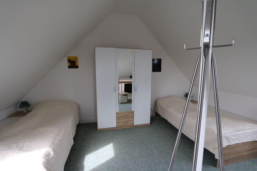 Hier befinden sich weitere Schlafgelegenheiten in Form von zwei Einzelbetten (90 cm x 200 cm), so dass ein oder zwei Kinder oder mitgereiste Pärchen Ihren eigenen Bereich haben. Eine weitere Sitzgelegenheit, ein Fernseher mit integriertem DVD-Player, eine Wii, ein kleiner Schreibtisch und eine Leseecke laden zum Verweilen ein.