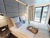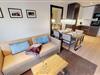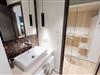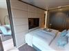 Sie erwartet eine gut ausgestattete Küchenzeile mit einer Essecke im Wohnbereich. Des Weiteren gibt es ein modernes Bad mit Dusche. Der offene Wohn- und Essbereich wird durch ein Sofa und einen Sessel abgerundet. Das separate Schlafzimmer mit Boxspring-Doppelbett wird durch Lamellen-Schiebetüren abgetrennt.