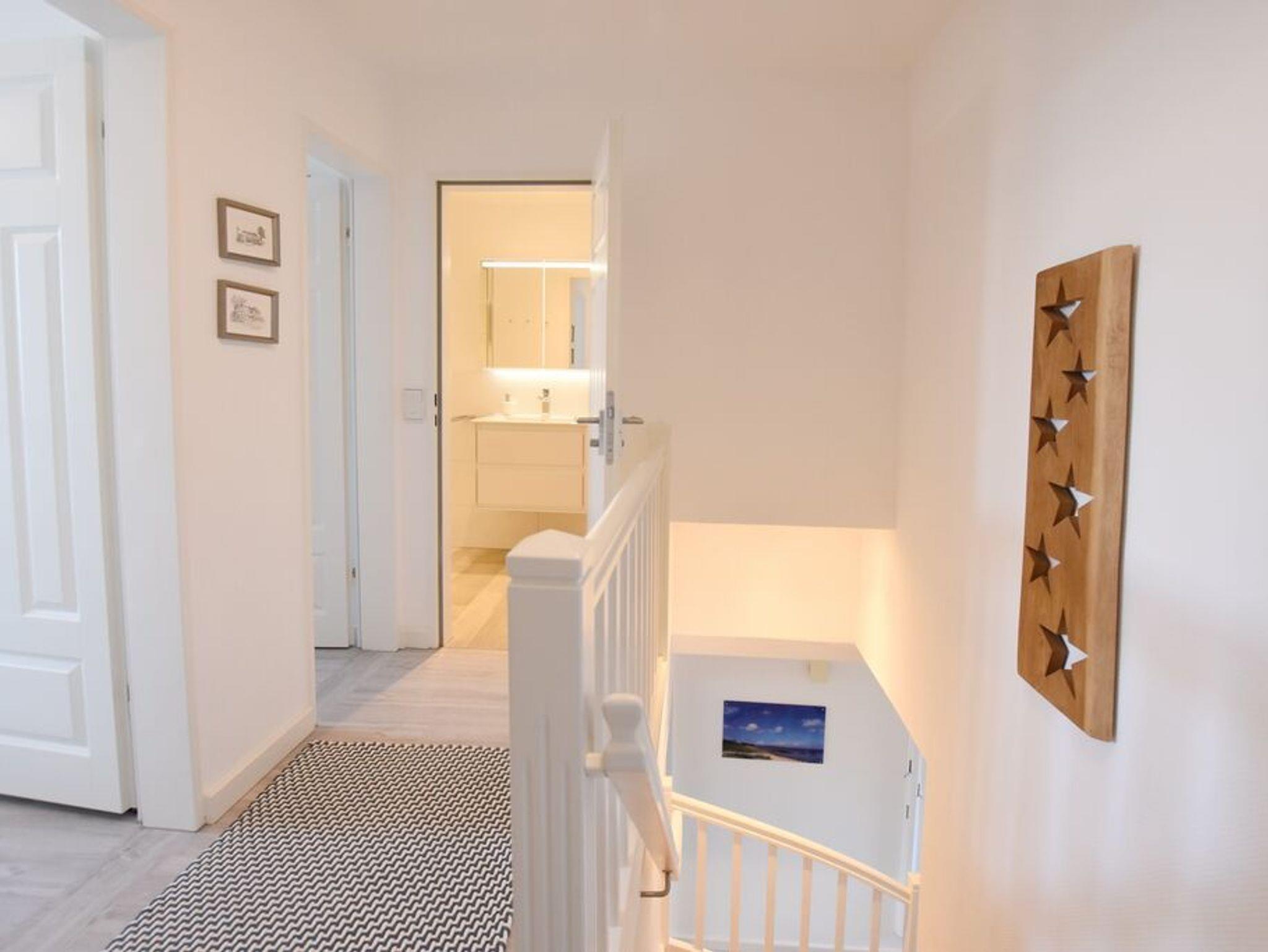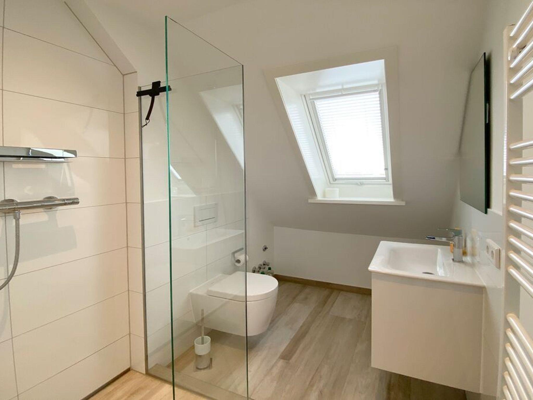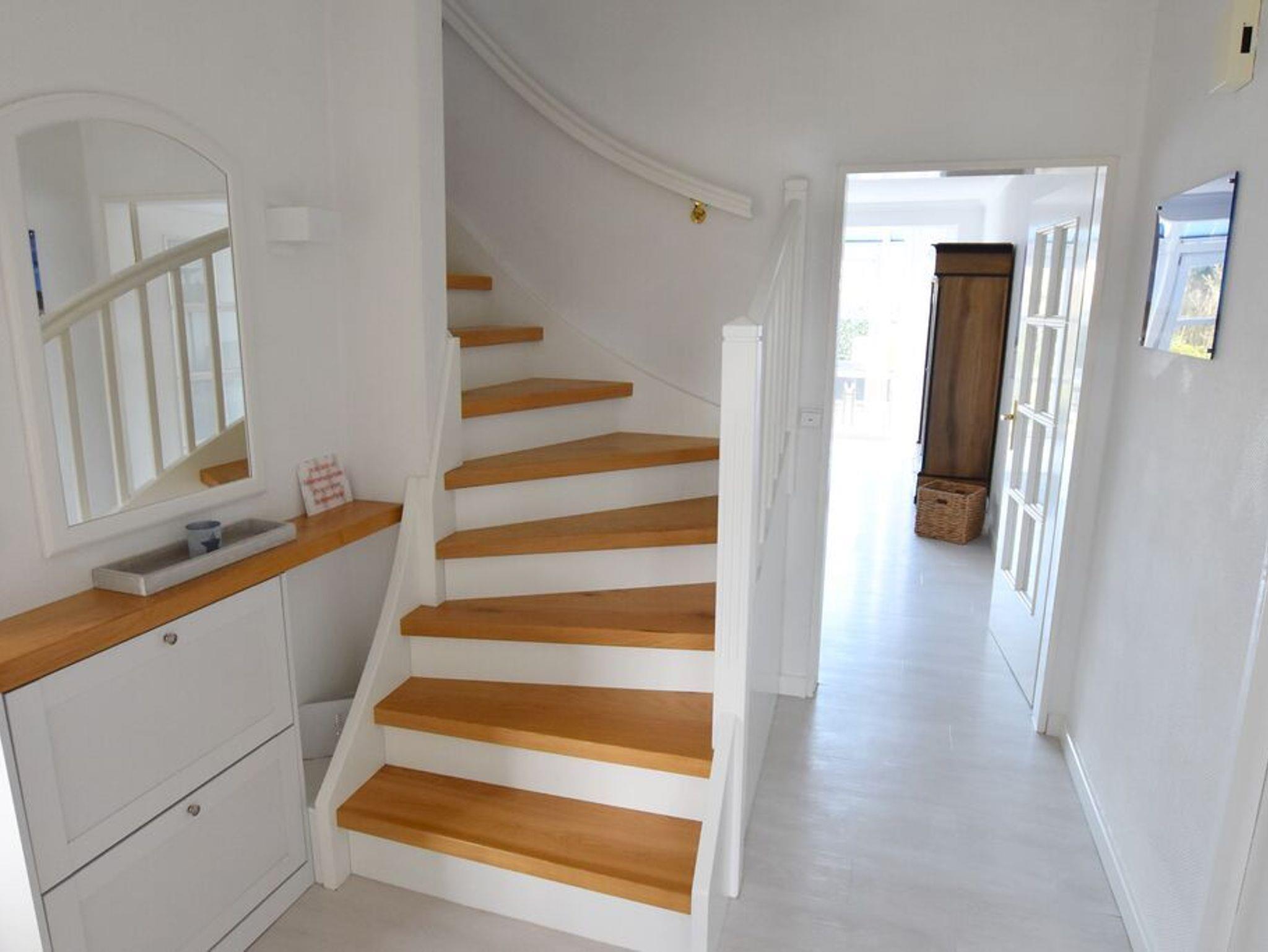 Reihenhaus mit Terrasse nach Süden, Wohnzimmer mit Wintergarten, gemütliche Eßecke und Fernseher, Sitzgruppe, Küche mit Geschirrspüler, Backofen, Mikrowelle, Waschmaschine und Trockner, 3 Schlafzimmer für je 2 Personen, neues Bad mit begehbarer Dusche, WC und Waschbecken, 1 Gäste- WC, im Spitzboden befindet sich ein zusätzlicher Raum mit Doppelbett und einem zweitem Duschbad mit WC.