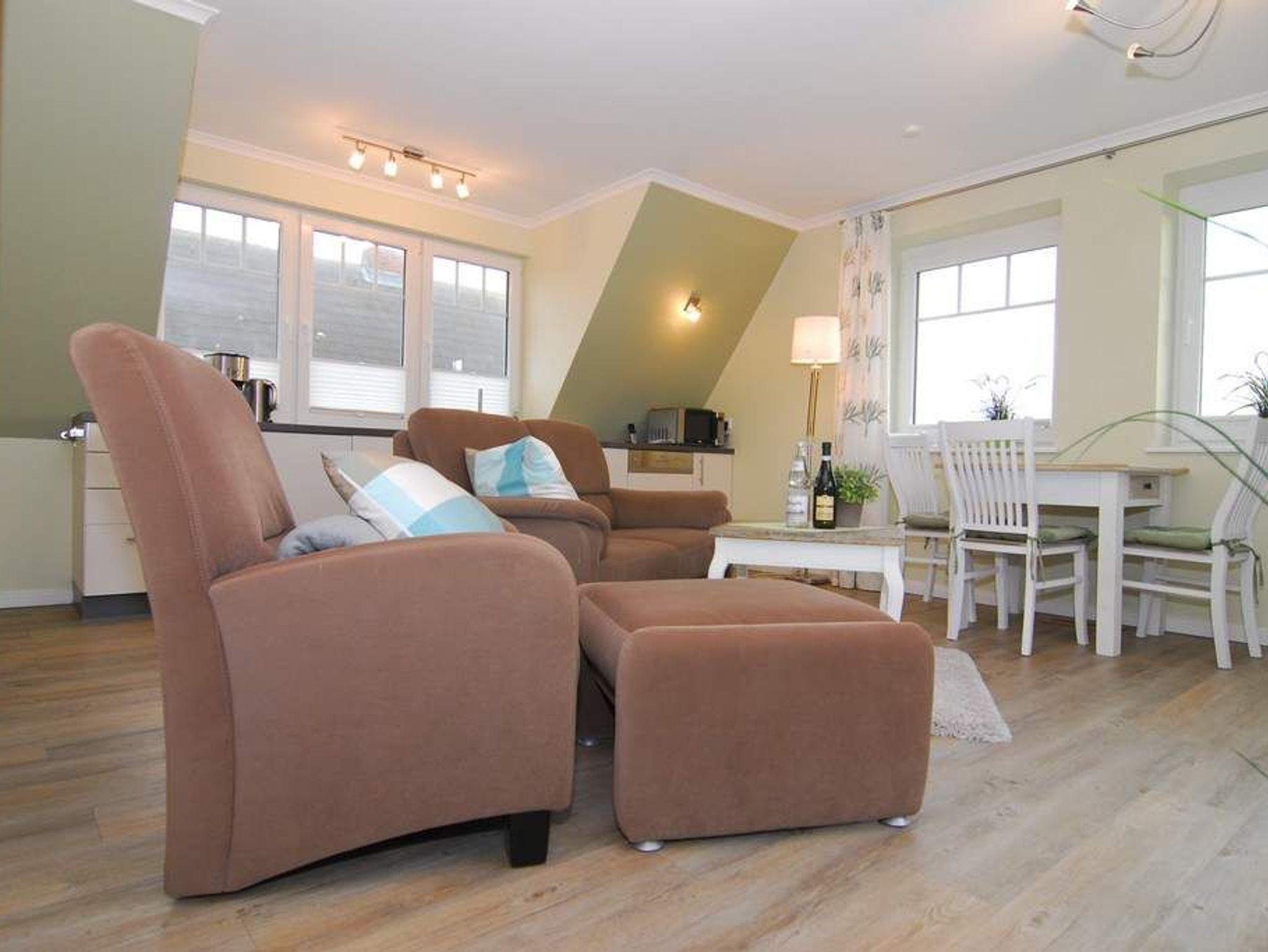 Moderne 2-Zimmer-Ferienwohnung mit Westbalkon und freiem Blick auf die Tinnum-Burg auf Sylt.