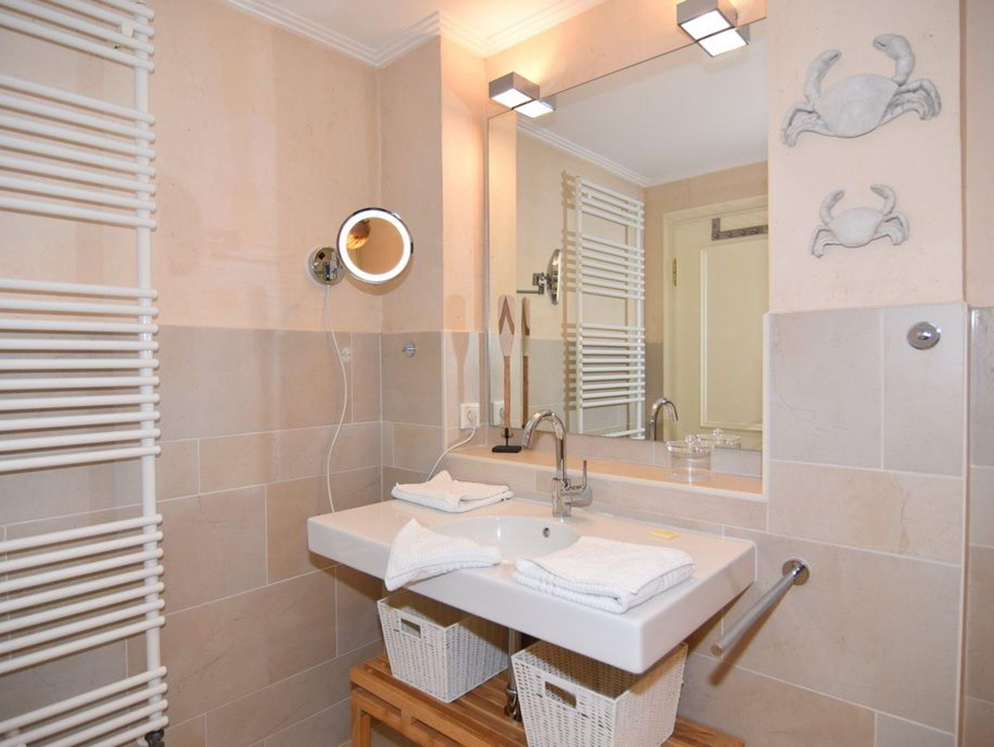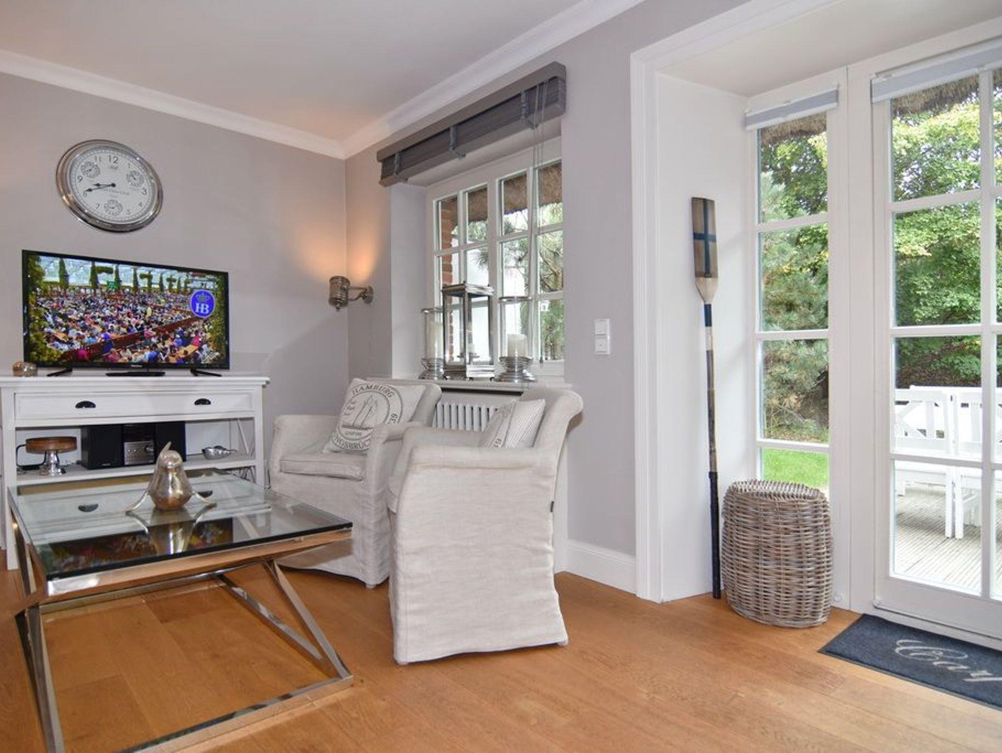 Das exklusive Apartment Oland bietet auf 77qm viel Platz und Komfort für insgesamt 3 Personen. Im Erdgeschoss lädt Sie ein großzügig geschnittener Wohnraum mit einem 65 Zoll-Bildschirm (Netflix tauglich mit eigenem Zugang), bequemer Sitz- und Essecke und eine offene Küche mit Geschirrspüler, Backofen, Nespressomaschine und den gängigen Koch- und Küchenutensilien ein. Im Souterrain befinden sich ein sehr geräumiges Schlafzimmer mit Doppelbett, kleiner Sitzgruppe, beleuchtetem Kleiderschrank und ein weiteres Schlafzimmer mit 1 Einzelbett und Kleiderschrank. Im Duschbad /WC mit Fenster und Föhn finden Sie hier eine kleine Abseite mit einem Waschtrockner. Im Flur des UG gibt es eine weitere Abseite, in der neben einem Bügelbrett und -eisen auch Ihre Koffer Platz finden. Sämtliche Räume sind hell und freundlich im Beach-House-Charakter und mit vielen Möbeln und Accesoires der Edelmarke Riviera Maison eingerichtet. Zur Wohnung gehört eine möblierte Westterrasse mt Strandkorb. Unmittelbar neben dem Apartment befindet sich Ihr Pkw-Außenstellplatz Nr. 6. Bettwäsche und Handtücher sind zur Anreise aufgezogen. Rauchen und Grillen ist aufgrund des Reetdaches nicht gestattet. Ihren Hund dürfen Sie gerne auf Anfrage mitbringen.