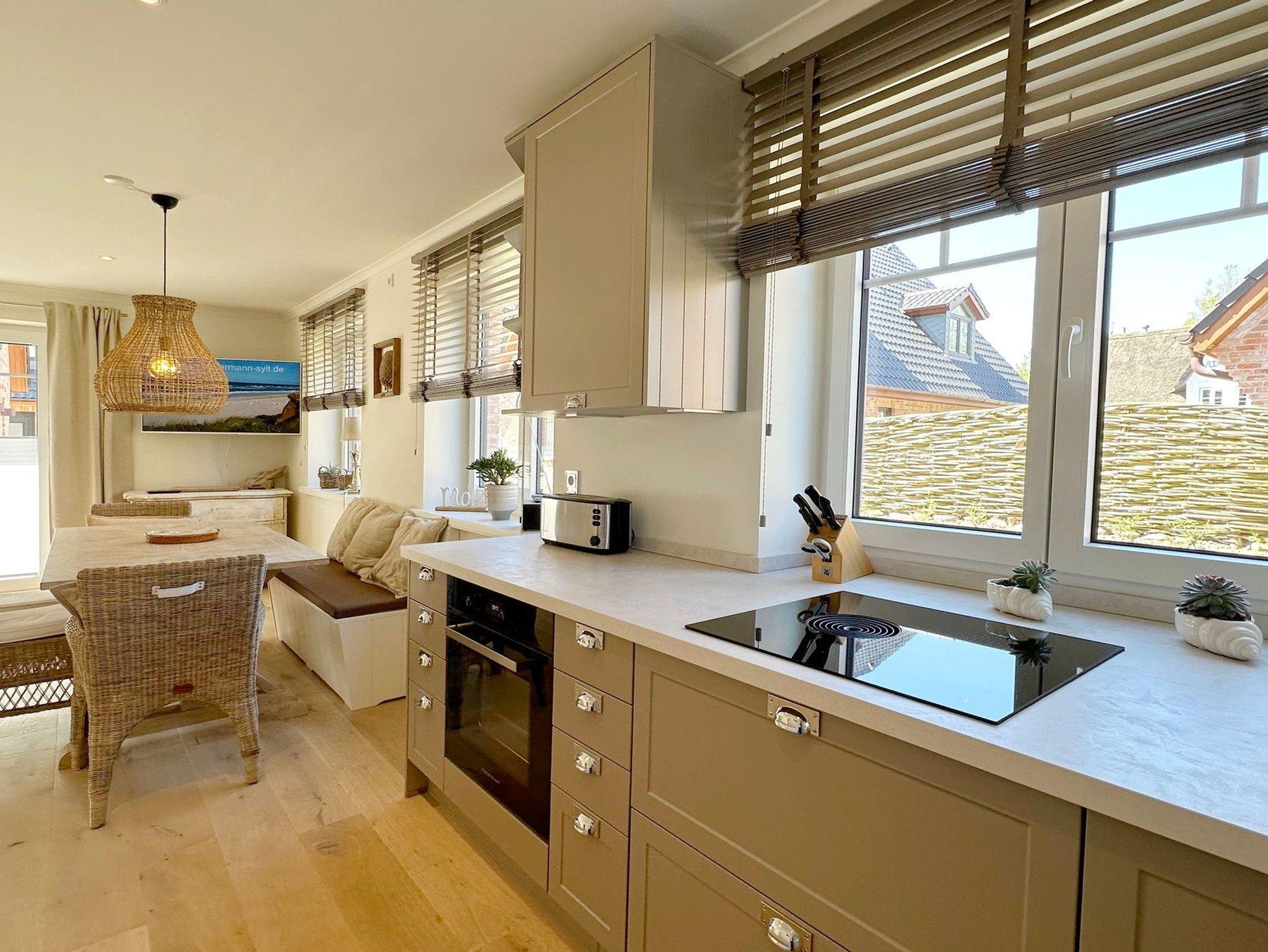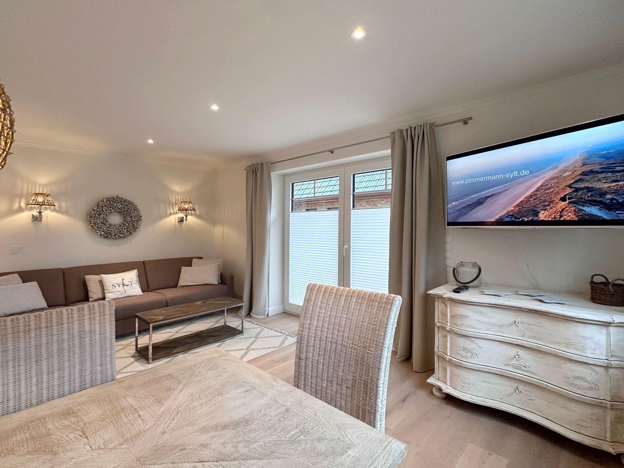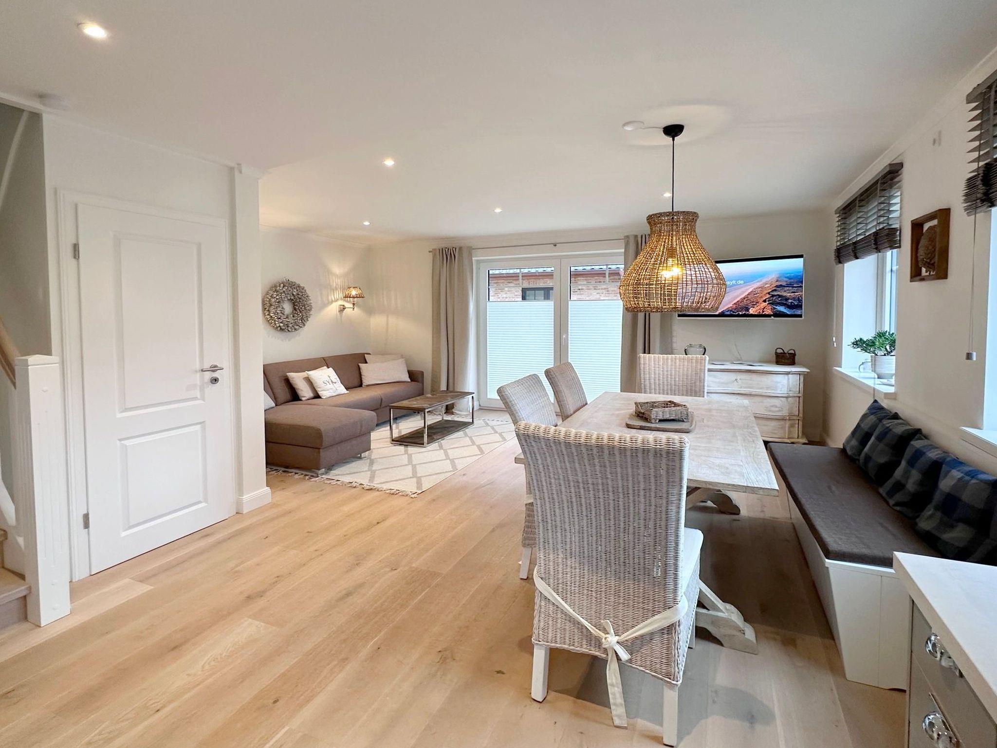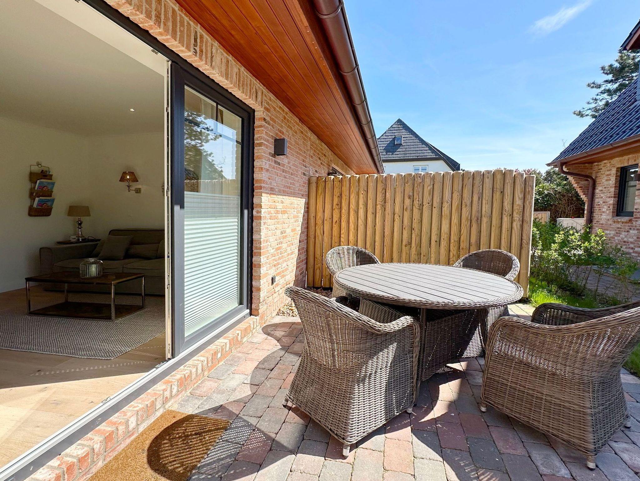 Das Engels Hüs in Tinnum auf Sylt bietet modernen Komfort und eine sonnige Terrasse für entspannte Tage am Meer.