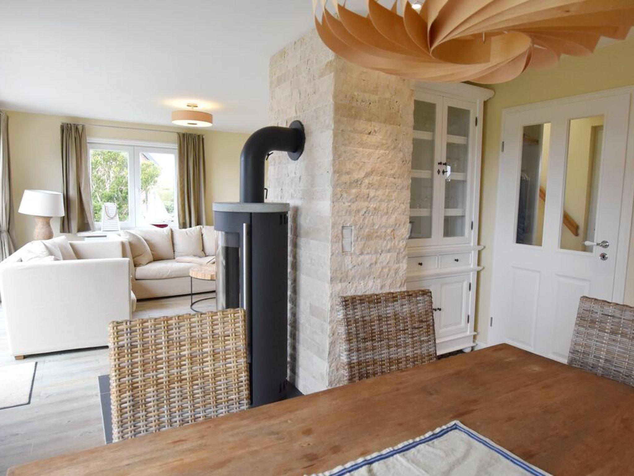 Einzelhaus in Randlage bei den Tinnumer Wiesen. Klein aber fein beschreibt dieses moderne und zeitgemäß ausgestattete Ferienhaus für 4 Personen. Im EG befindet sich das helle freundliche Wohnzimmer mit Kaminofen, Flatscreen-TV übergehend zum Essbereich und die moderne Landhausküche. Von hier haben Sie Zugang zur Süd-Terrasse und zum Garten.