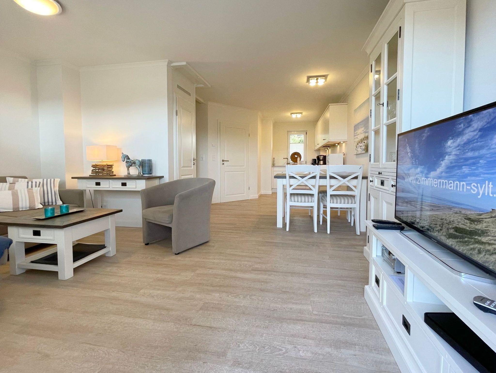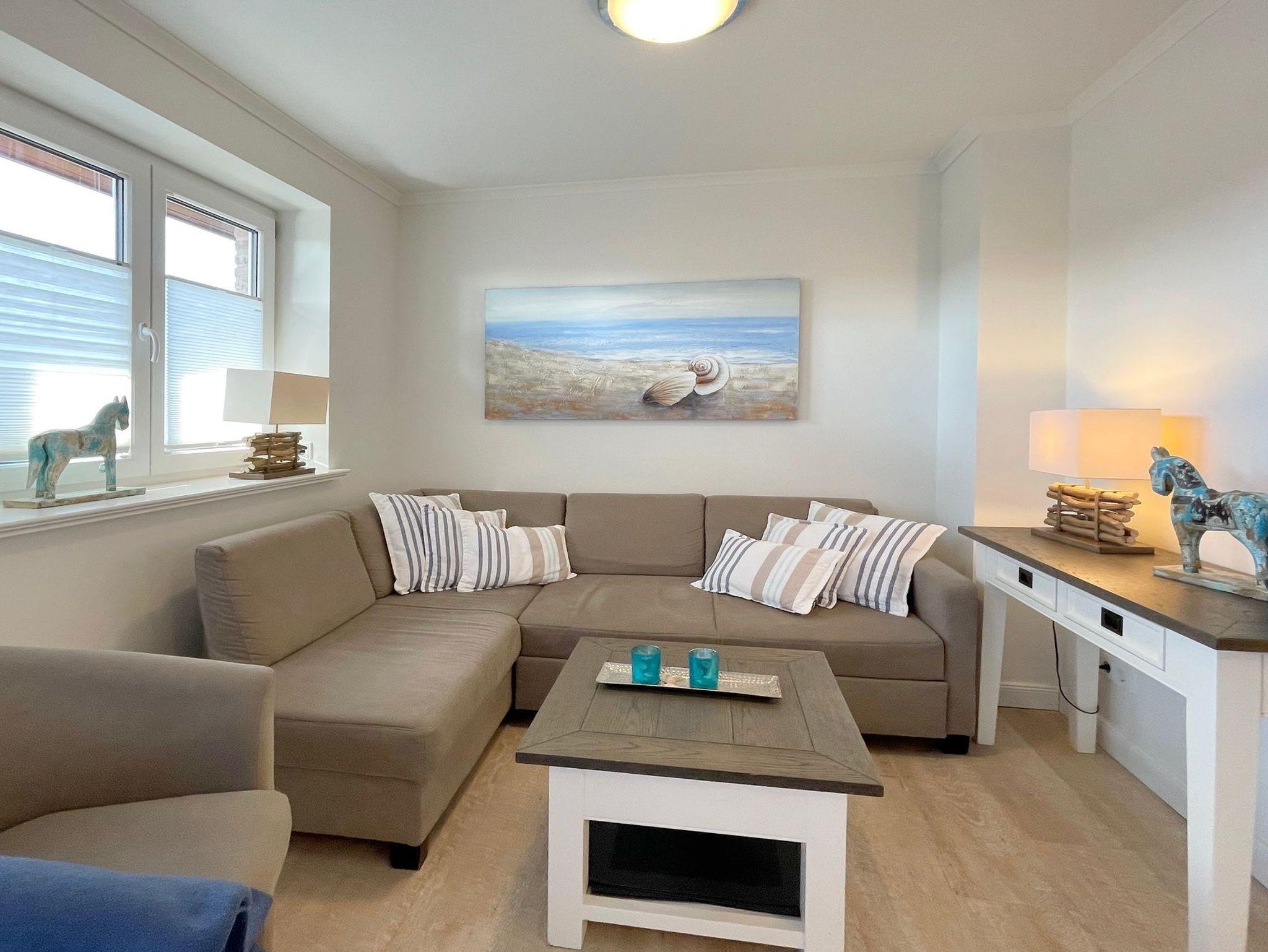 In zentraler Insellage mit Feldblick haben wir diese Mittehausscheibe für Ihren Urlaub auf Sylt im Angebot. Im Erdgeschoss befindet sich der Wohn-Essbereich mit offener Küche, Flur und ein kleines Duschbad.