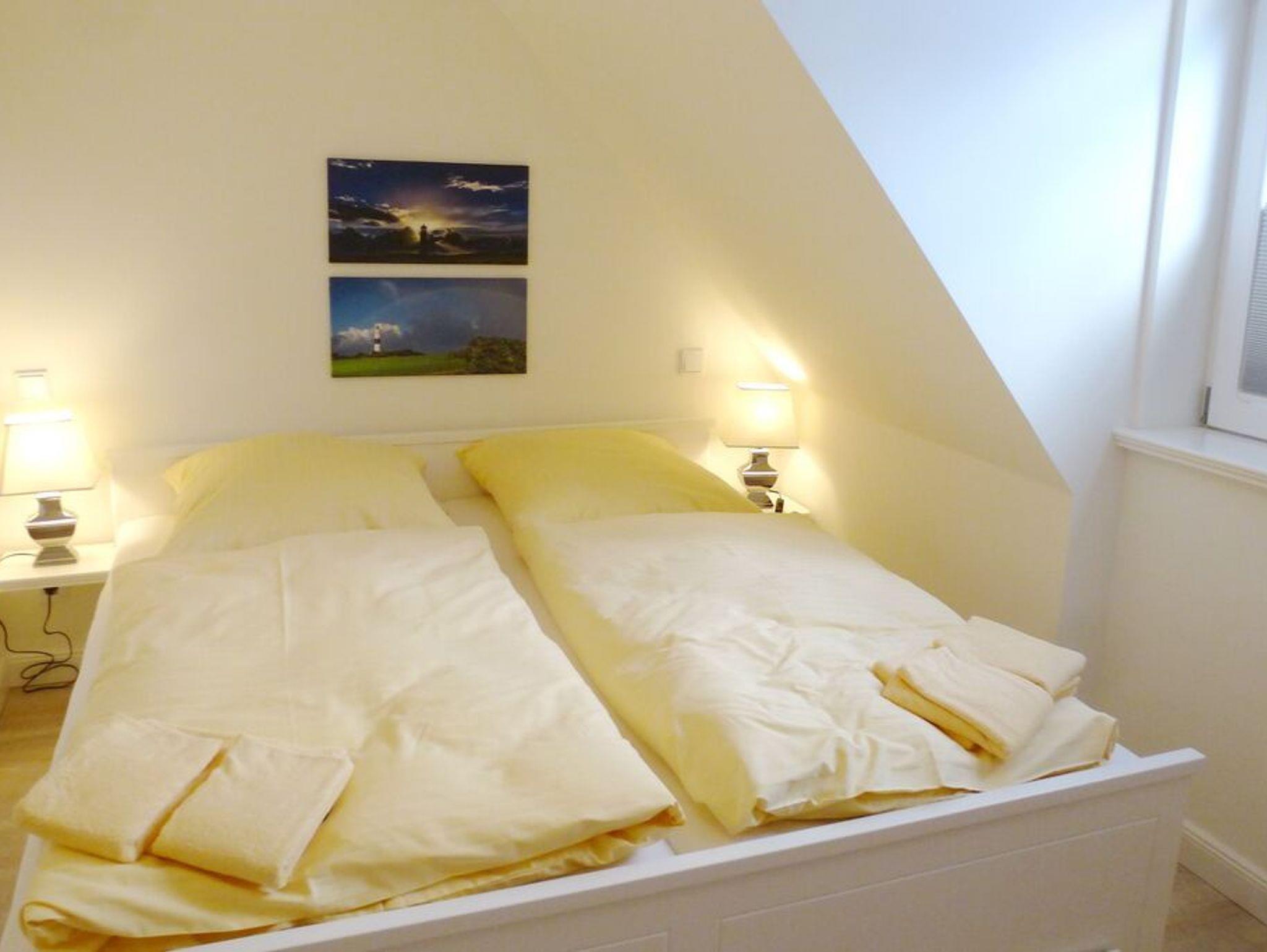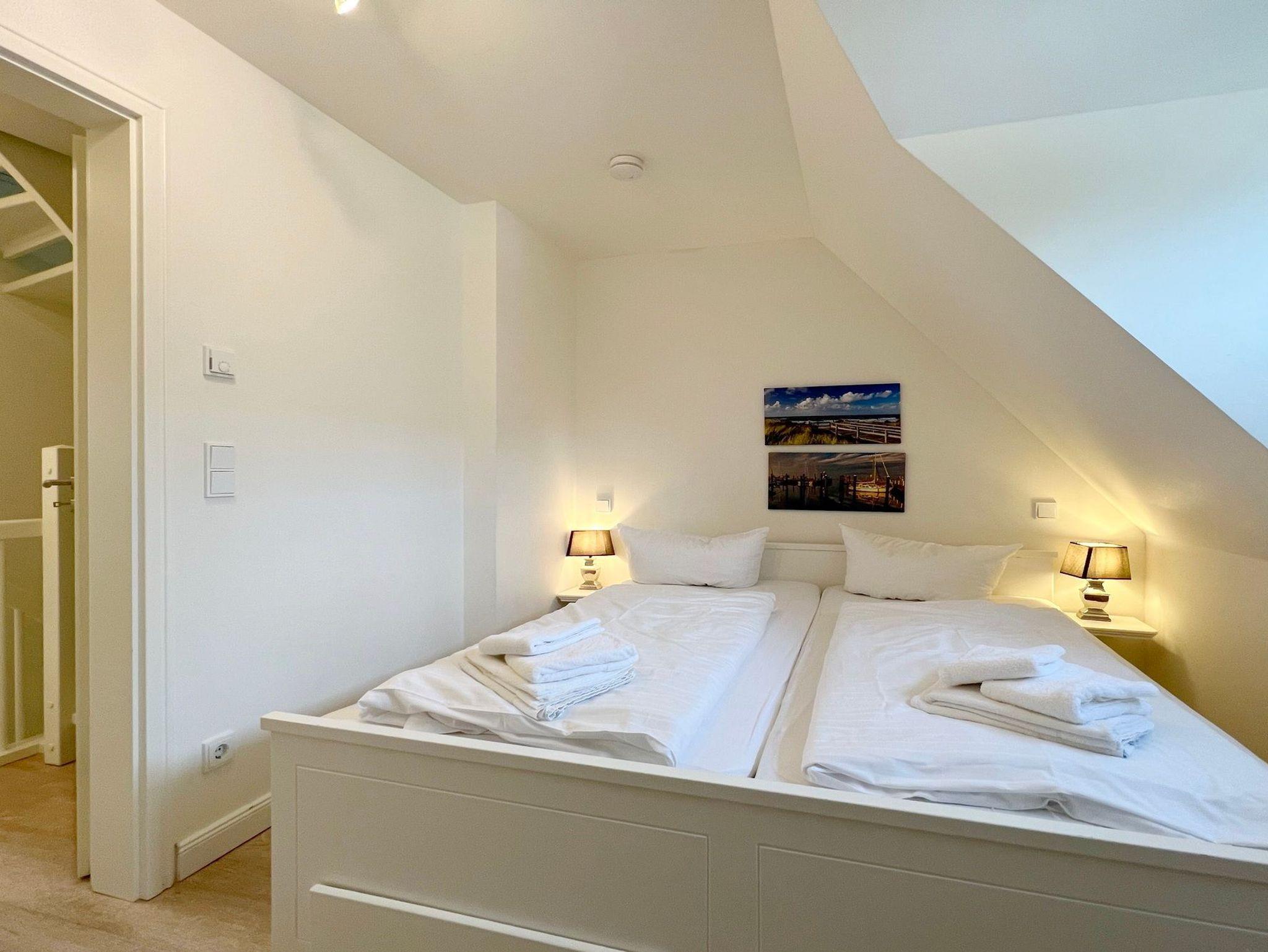 Im OG finden Sie 2 Schlafzimmer mit Doppelbetten und ein zweites Duschbad. Im Spitzboden befindet sich ein weiterer Raum mit einer zusätzlichen Schlafmöglichkeit.