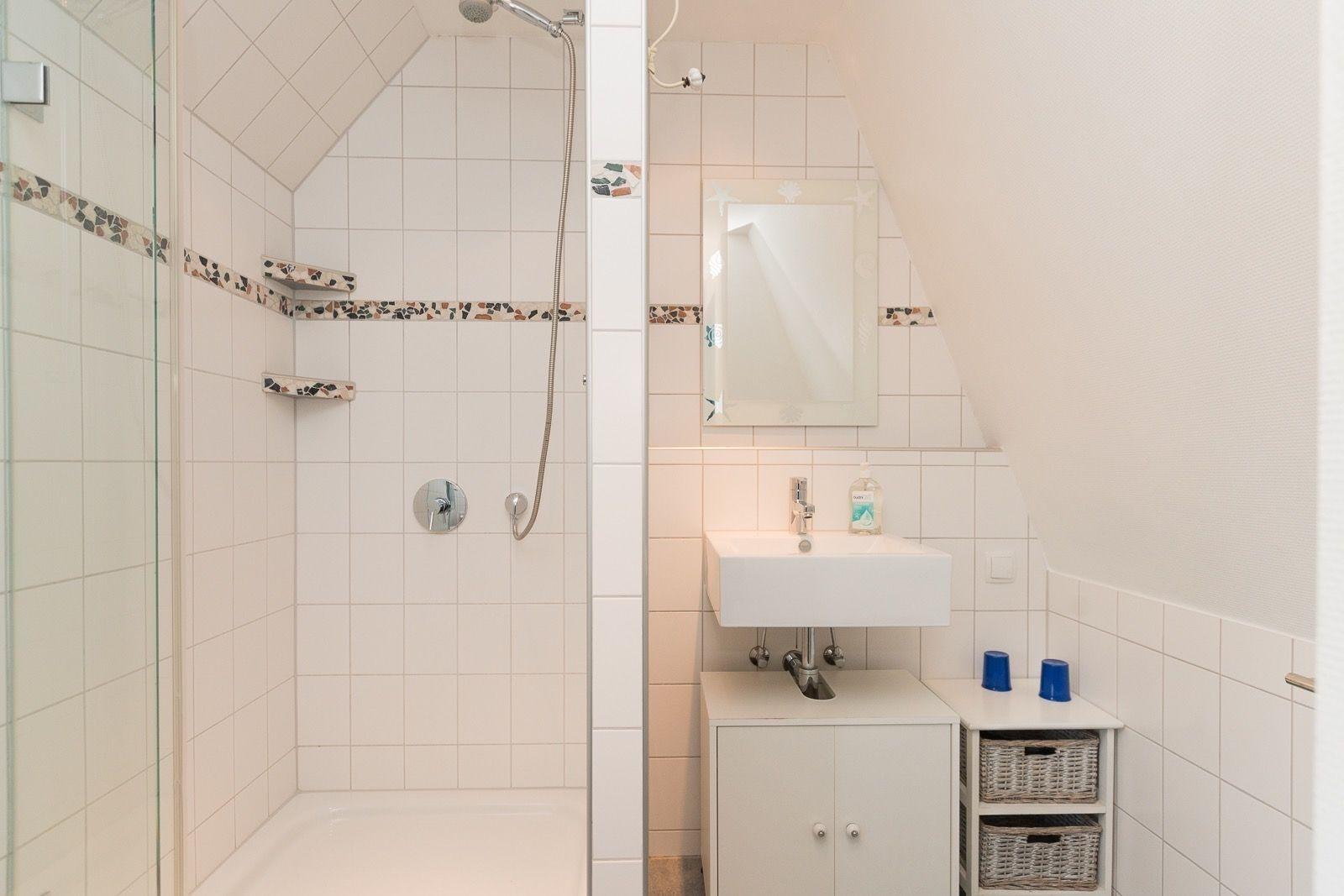 Diese ca. 40 m² große Ferienwohnung bietet alles, was Sie für einen entspannten Urlaub benötigen. Im Obergeschoss erwartet Sie ein komfortables Schlafzimmer mit Doppelbett sowie ein modernes Duschbad mit WC. Hier können Sie nach einem Tag am Strand wunderbar zur Ruhe kommen. Im Erdgeschoss befindet sich der einladende Wohn-/Schlafraum, der zum Entspannen einlädt, sowie eine separate, voll ausgestattete Küche mit Geschirrspüler und Mikrowelle – ideal für kleine kulinarische Highlights während Ihres Aufenthalts.