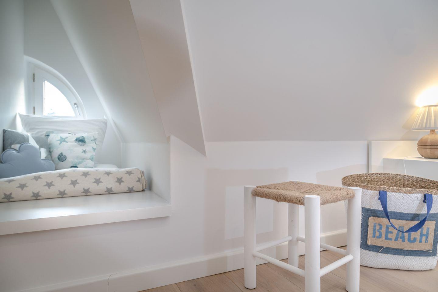 Eine gemütliche Schlafkoje lädt kleine Gäste zum Einkuscheln ein, während im Gemeinschaftsgarten mit Liegewiese und eigenem Strandkorb entspannte Stunden warten.
