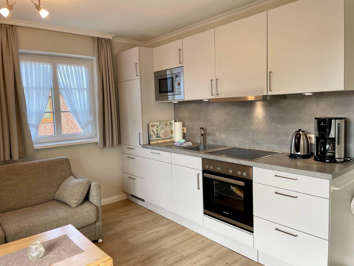 Die "Austernperle" ist eine gemütliche 2-Zimmer Wohnung für 2 Personen. Sie ist ausgestattet mit einer gemütlichen Sitzgruppe, einer sehr bequemen Esstischgruppe direkt am eigenen Balkon mit Blick über den üppig bewachsenen Garten mit Teich. Eine gut ausgestattete Küchenzeile mit Kühlschrank, Cerankochfeld, Backofen und Geschirrspüler, sowie das Schlafzimmer mit großem Doppelbett, viel Schrankraum und eine Schreibtischgruppe trägt zu einem entspannten Urlaub bei. Eine kleine Diele mit Garderobe und der großzügige Sanitärbereich mit Dusche, Waschbecken und WC vervollständigen die Wohnung.