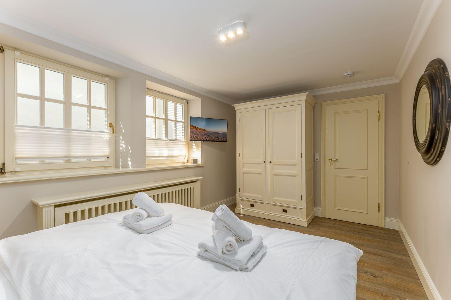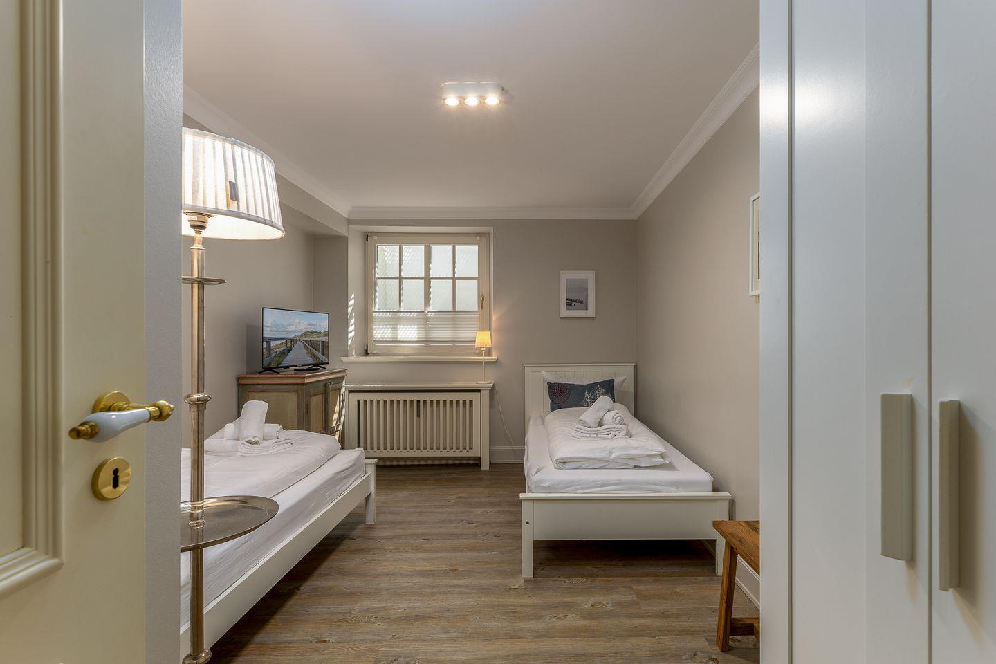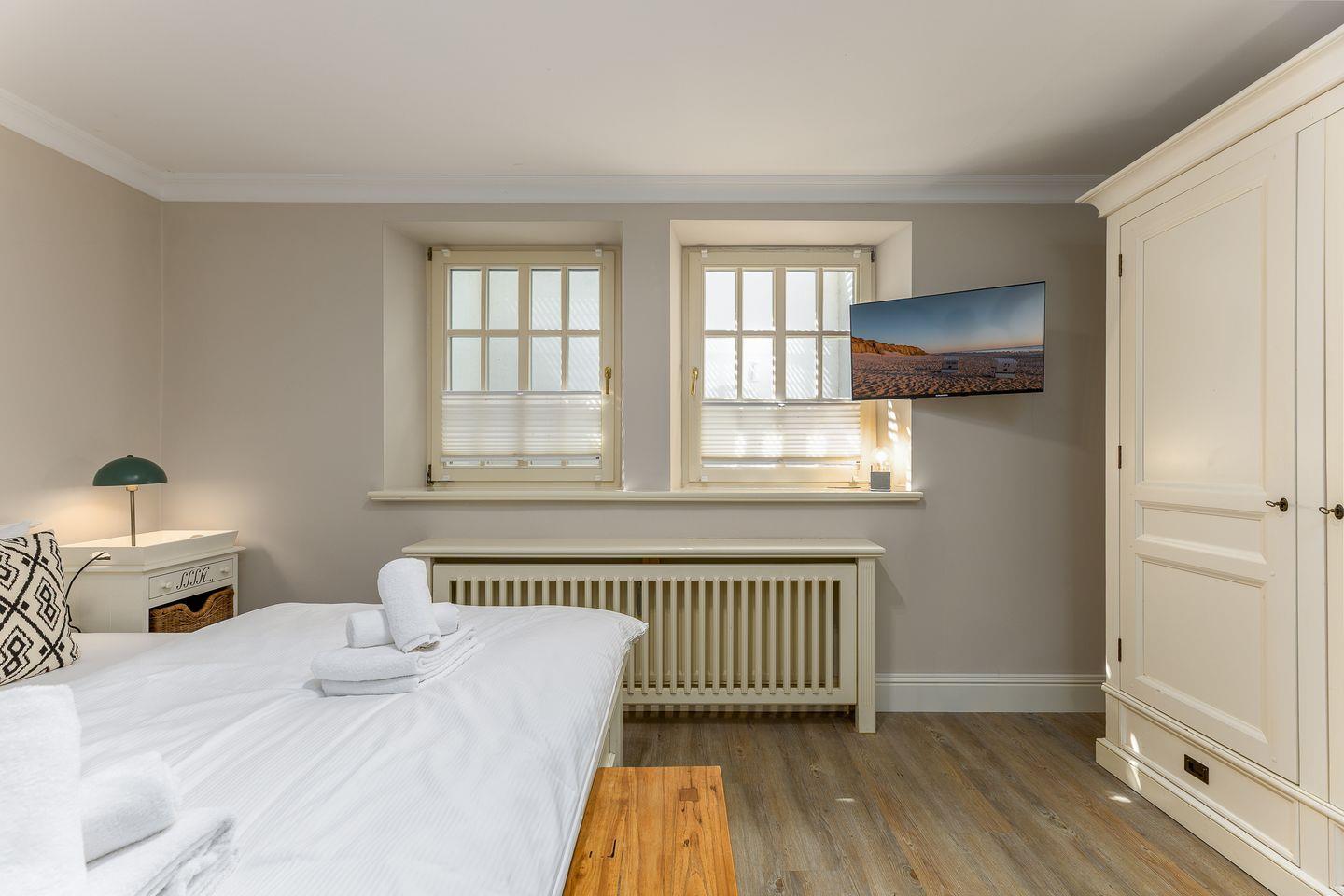Im Souterrain befinden sich die beiden Schlafzimmer mit einem komfortablen Doppelbett bzw. zwei nicht minder gemütlichen Einzelbetten. Ebenfalls in doppelter Ausführung sind die stilvollen Duschbäder, die sich in einem feinen Sandton und mit ausreichend Platz präsentieren.