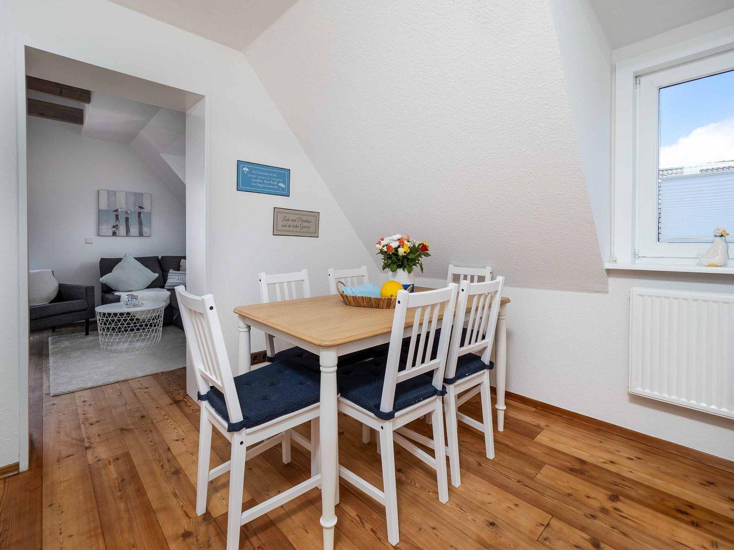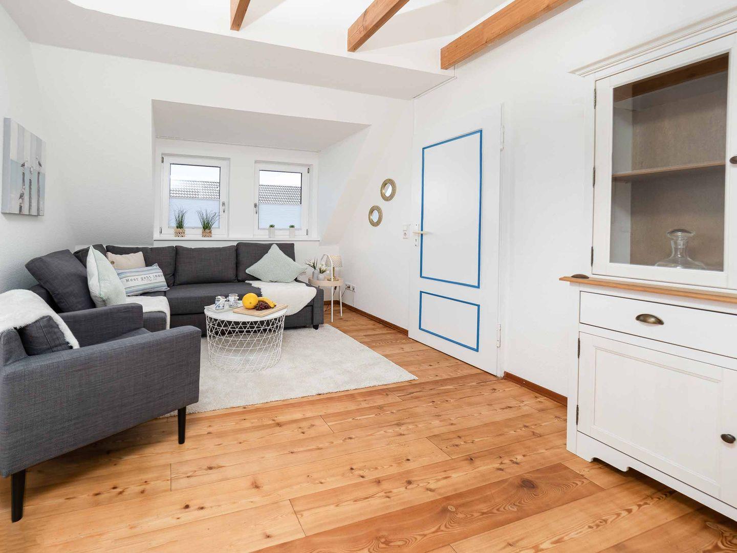 Gemütliche 3-Zimmerwohnung im Obergeschoss auf ca. 65 m², für bis zu 5 Personen. Dieses helle und liebevoll eingerichtete Feriendomizil erstreckt sich über zwei Etagen und befindet sich in beliebtem Wohnviertel von Tinnum.