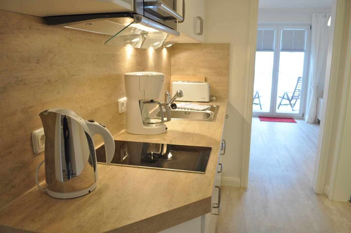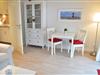 Moderne Ferienwohnung für 3 Personen in Tinnum. Süd-Terrasse mit kleinem Garten, gemütlicher Wohn-/Essbereich, gut ausgestattete Küche, separates Schlafzimmer mit Doppelbett. Waschmaschine und Trockner vorhanden. Keine Haustiere.