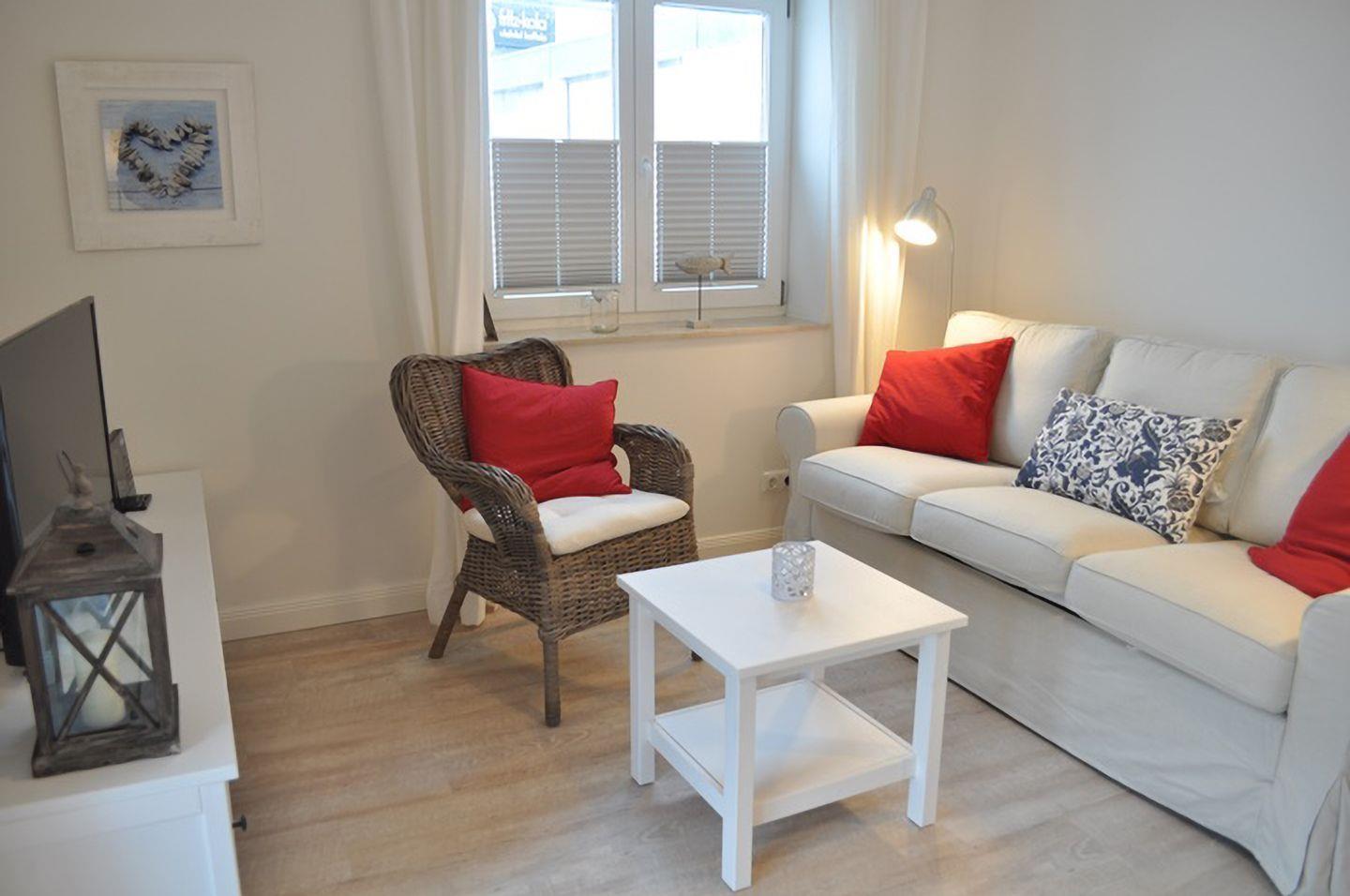 Diese moderne Ferienwohnung in Tinnum bietet auf ca. 55 m² eine ideale Unterkunft für bis zu 3 Personen. Der gemütliche Wohn-/Essbereich mit direktem Zugang zur sonnigen Süd-Terrasse und dem kleinen Garten lädt zum Verweilen und Entspannen ein. Das separate Schlafzimmer verfügt über ein großes Doppelbett (160 x 200 cm) und einen geräumigen Kleiderschrank, der viel Stauraum bietet. Ein komfortables Schlafsofa (160 x 200 cm) steht im Wohnbereich zur Verfügung. Die gut ausgestattete Küchenzeile lässt keine Wünsche offen und lädt zum Kochen ein. Das moderne Badezimmer ist mit Dusche und WC ausgestattet. Im Keller stehen unseren Gästen eine Waschmaschine und ein Trockner zur Verfügung (Münzbetrieb). Einkaufsmöglichkeiten sind nur 2 Minuten entfernt, sodass alles Wichtige schnell erreichbar ist. Ein kostenfreier Stellplatz gehört zur Wohnung. Haustiere sind nicht gestattet.