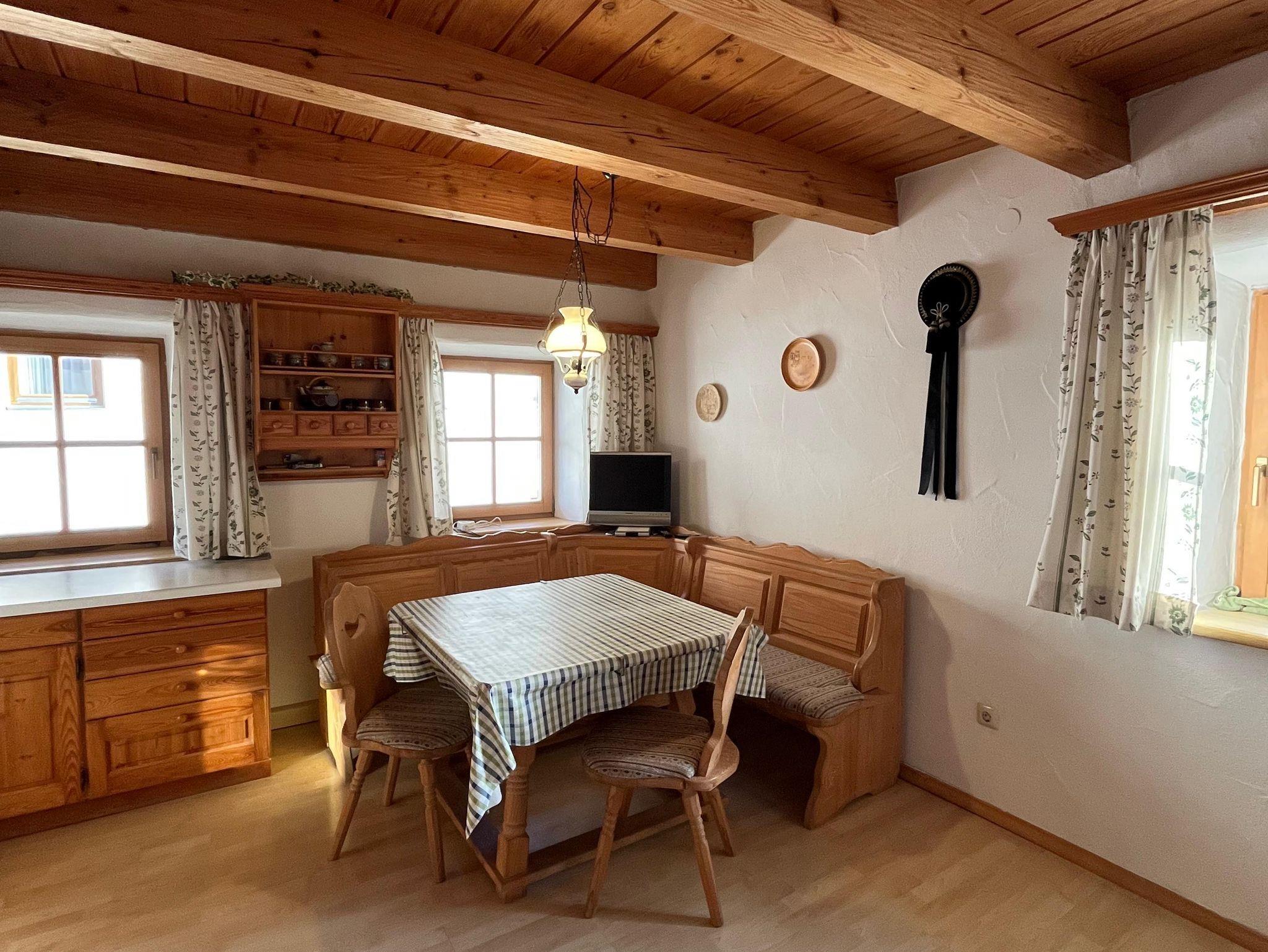 Ferienwohnung im 1. Stock, Nichtraucherwohnung, gemütliche Wohnküche mit Kachelofen, ein Schlafraum mit Kinderbetten. Kleinkinderausstattung auf Wunsch.