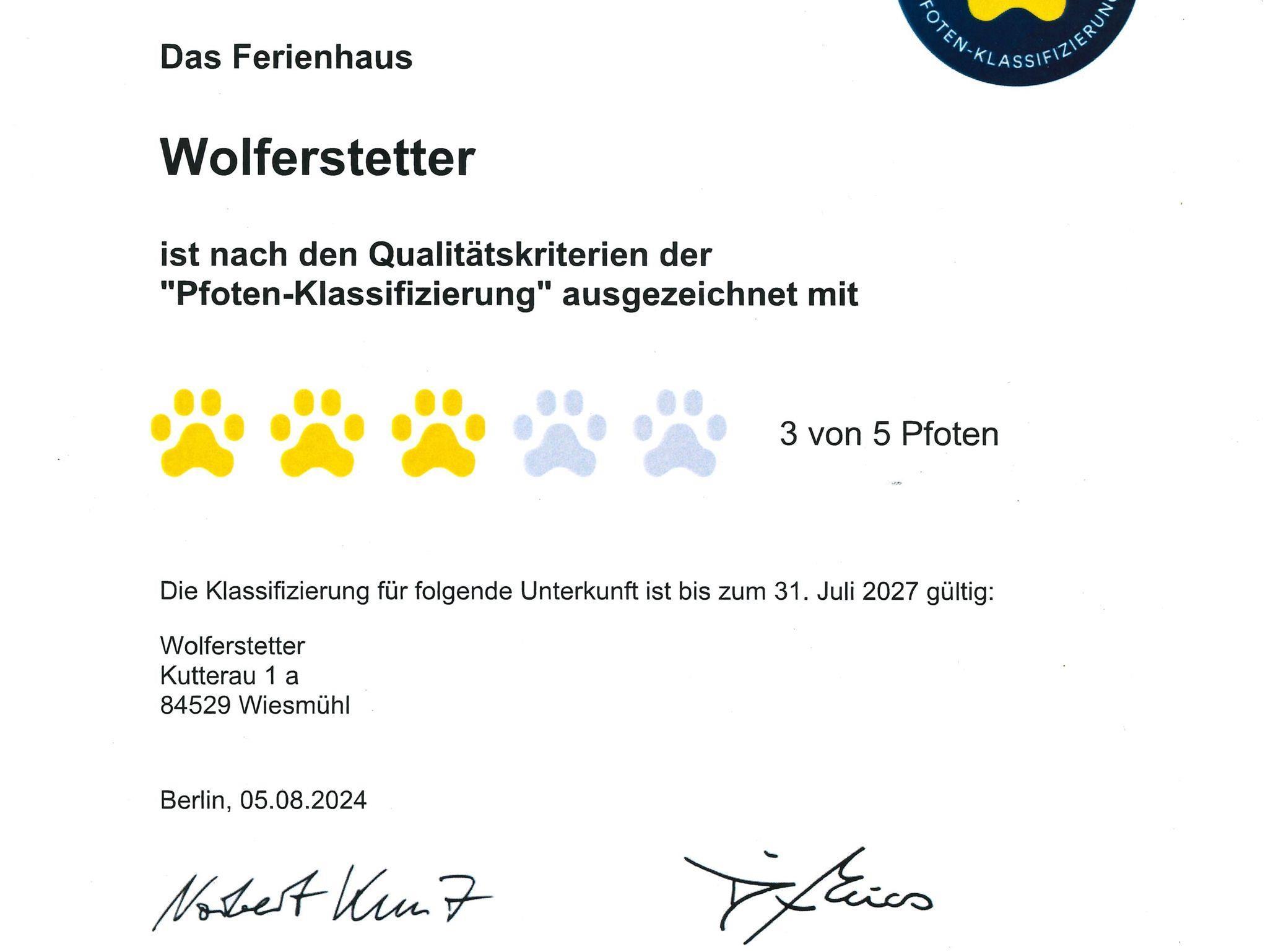 Wir sind stolz darauf als erste Ferienuntekunft die Zertifizierung 3 Pfötchen erhalten zu haben.