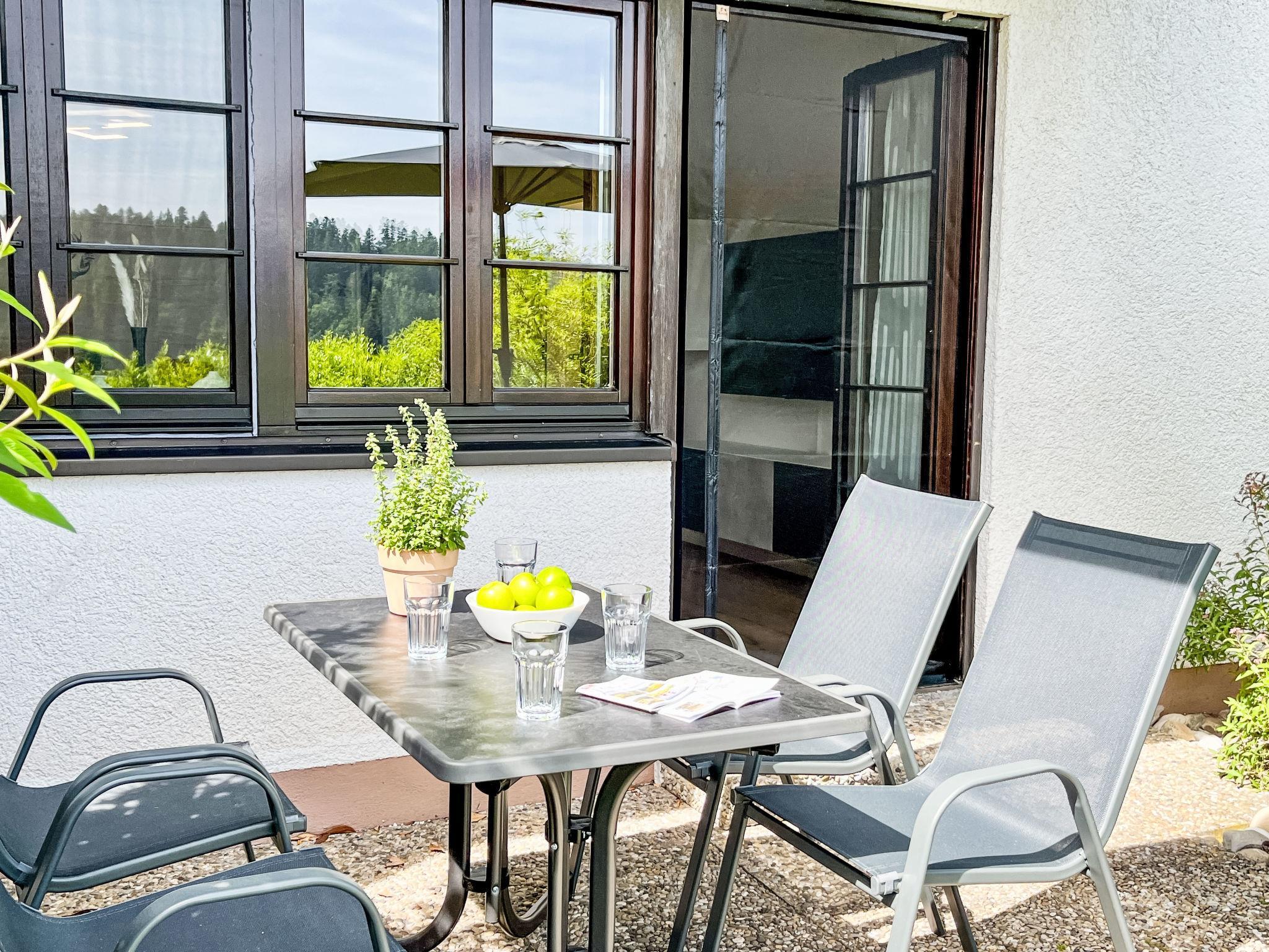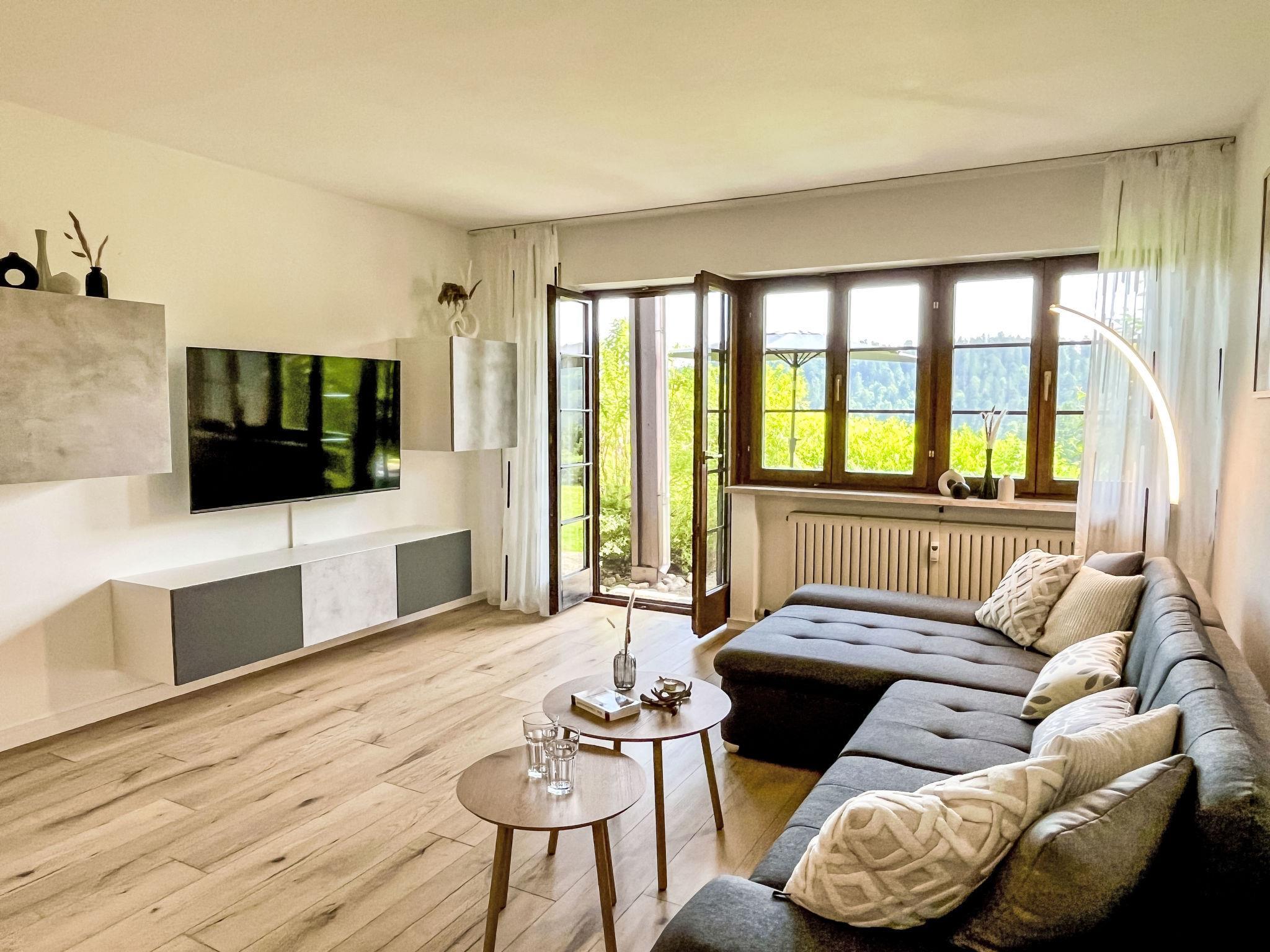 "Tannenblick", 2-Zimmer-Wohnung 60 m2, im ebenerdigen Untergeschoss. Teilweise renoviert im Jahre 2025, schön und modern eingerichtet: Eingang. Wohn-/Schlafzimmer mit 1 Doppeldiwanbett (160 cm, Länge 200 cm), 1 Klappbett (80 cm, Länge 190 cm), Essecke, Sat-TV und Digital-TV (Flachbildschirm). Ausgang zur Terrasse. 1 Zimmer mit 1 Doppelbett (2 x 90 cm, Länge 200 cm). Kleine Küche (Backofen, Geschirrspüler, 4 Glaskeramikplatten, Toaster, Wasserkocher, Mikrowelle, elektrische Kaffeemaschine). Bad/WC. Heizung. Terrasse. Terrassenmöbel. Schöne Sicht auf die Berge und den Wald. Zur Verfügung: Kinderhochstuhl, Babybett, Haartrockner. Internet (WLAN, gratis). Parkplatz Nr. 17 beim Haus. Bitte beachten: Nichtraucher-Unterkunft. Rauchmelder, Feuerlöscher, kein Fahrstuhl. Flexibilität bei der Bettenaufteilung: Es stehen mehr Schlafmöglichkeiten zur Verfügung als die maximal zugelassene Personenzahl, diese darf dennoch nicht überschritten werden.