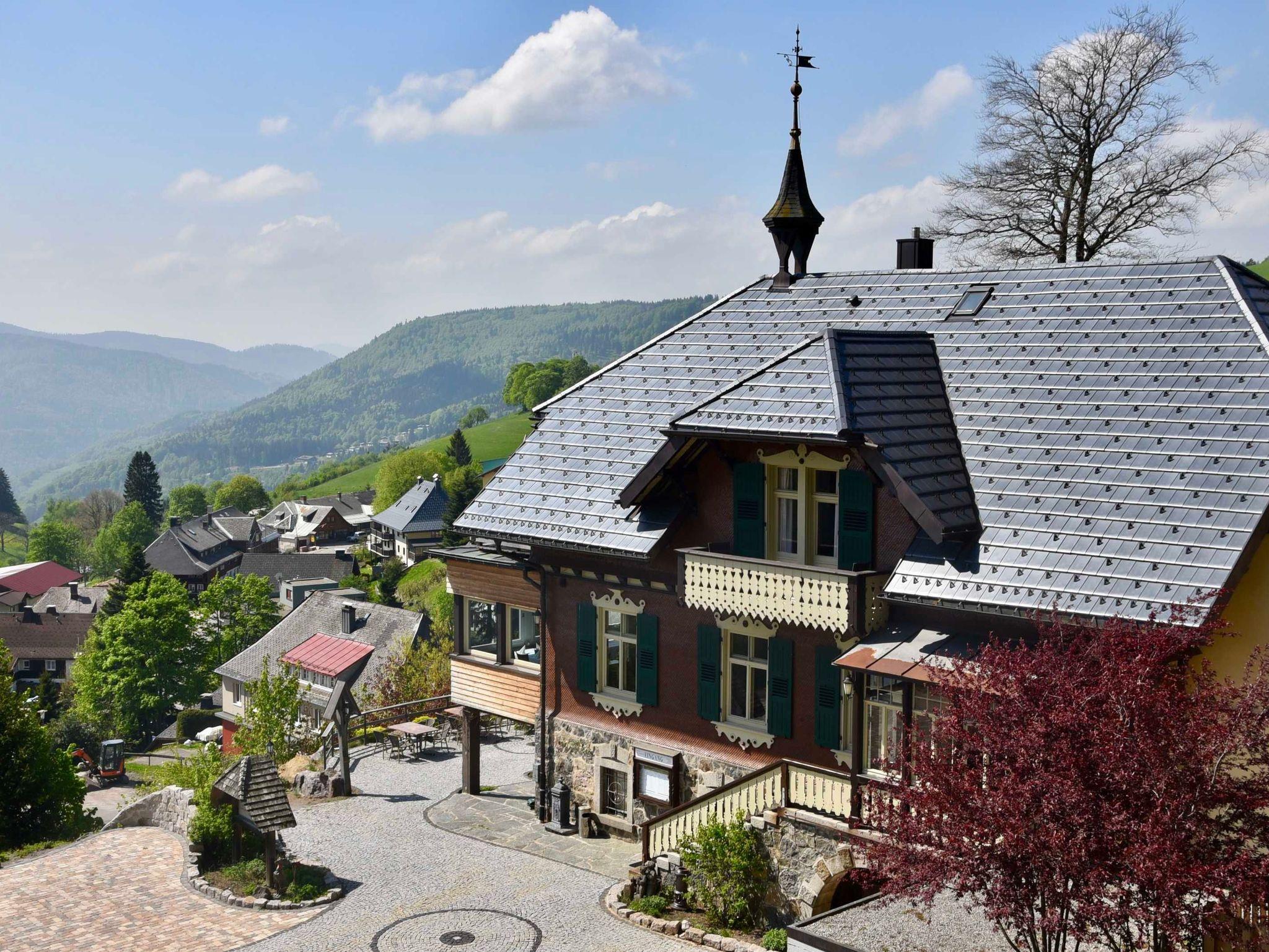 Alpenpanorama, das sich an klaren Tagen dem Auge bietet. Durch die erhöhte, solitäre Lage des Hotels, können Sie diese Schwarzwaldidylle wunderbar genießen.