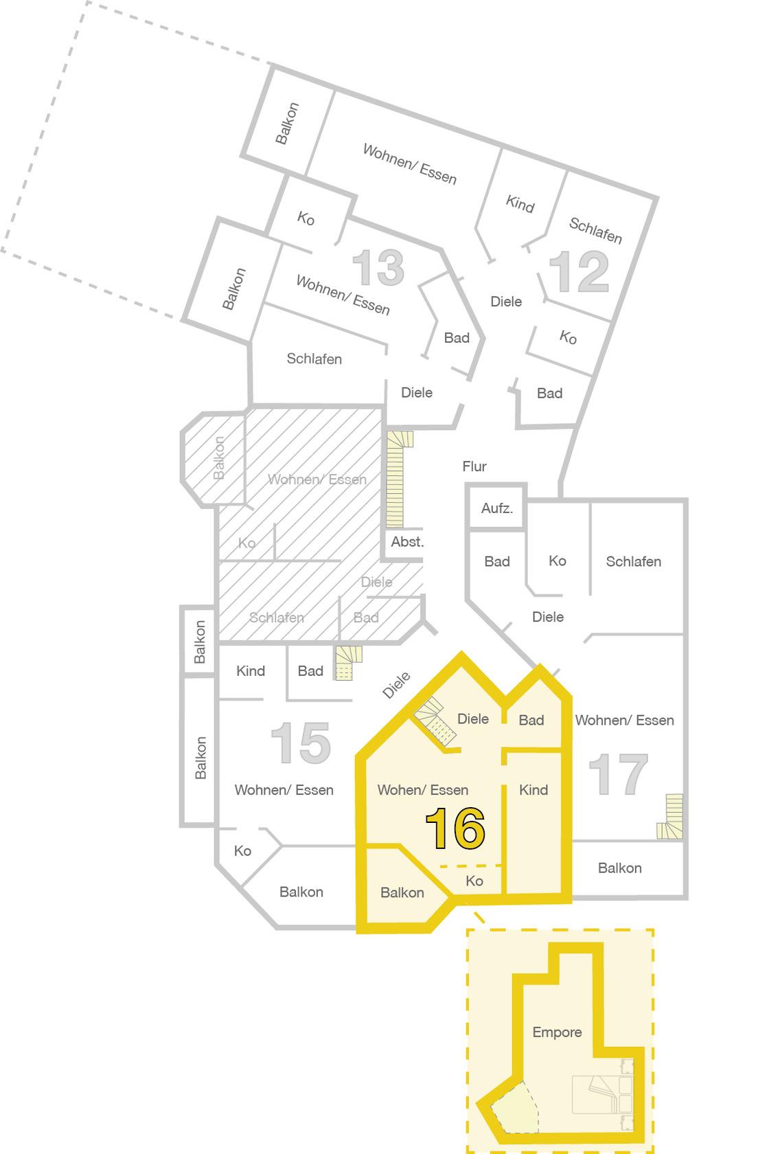 Das Apartment 16 ist ca 50m² groß, hat 2 Schlafzimmer (eines davon auf der Galerie), einen kleinen Balkon und ist für maximal 6 Personen geeignet.