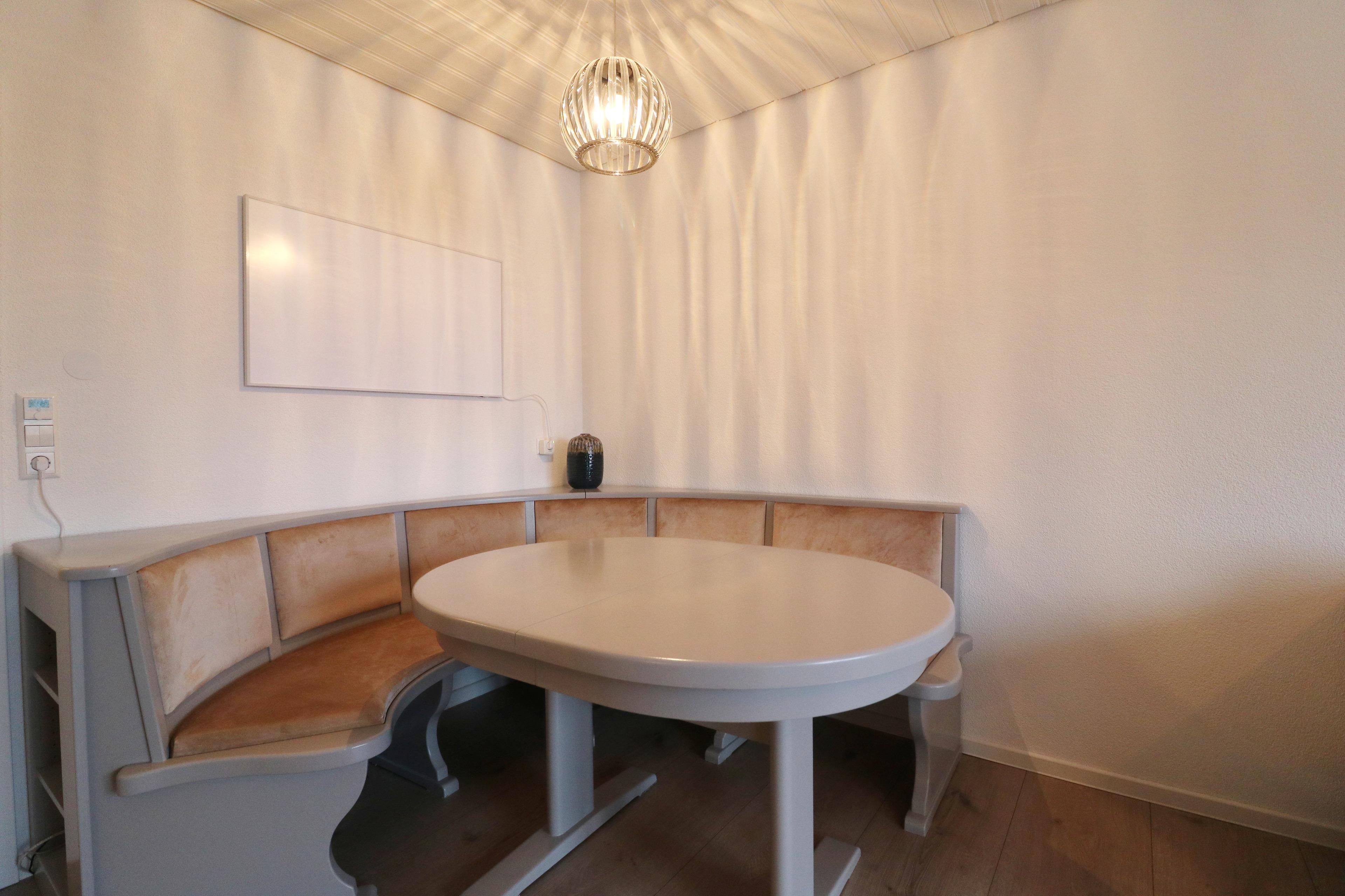 - Wohnzimmer mit Schlafsofa (160x200), TV und großer Essecke