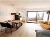 The open, approx. 29 m² living, sleeping and dining area has a dining area, a sofa, a TV and a box-spring bed (180x200). The living and dining area leads to the approx. 6 m² west-facing balcony, which offers an outdoor dining area, seasonal barbecue and sun loungers.