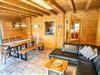 - Wohnraum mit Essplatz für 8 Personen, Ledersofa, Flachbild Sat-TV, Plattenspieler und Holzpellettsofen