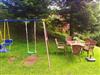 Draußen erwarten Euch Kinder im Sommer 2 Schaukeln, Trampolin, Sandkasten, Tischtennis, ein Baumhaus, sowie das Hasen-und Meerschweinchen-Gehege.