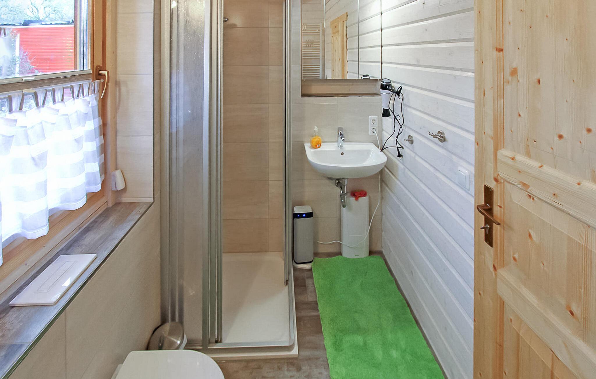 Das im Jahre 2019 neu erbaute Ferienhaus im Blockhausstil befindet sich auf einem 500 qm großen und separaten Erholungsgrundstück innerhalb einer kleinen Ferienhaussiedlung abseits der Ortschaft Groß Nemerow im Ortsteil Tollenseheim, nur ca. 100 m Luftlinie vom Tollensesee entfernt. Den Naturbadestrand und den Schiffsanleger erreicht man in ca. 500 m, einen Golfplatz in ca. 300 m.Das Ferienhaus ist modern ausgestattet und erstreckt sich über 2 Wohnebenen. Im Erdgeschoss befindet sich der Wohnraum (Polstersitzecke, Esstisch, LED-TV, Radio, Klimaanlage) mit einer offenen Küchenzeile (E-Herd mit Backofen, Geschirrspüler, Mikrowelle, Kühlschrank mit Tiefkühlteil, div. Küchengeräte), 1 Schlafraum (Doppelbett, TV) sowie ein Bad (DU/WC, Waschmaschine, Fön). Im Obergeschoss gibt es 2 weitere Schlafräume mit je einem Doppelbett (1 x mit möbliertem Balkon), sowie ein kleines Gäste WC. Die Beheizung erfolgt über eine Elektroheizung sowie über einen Kaminofen im Wohnraum (Erstausstattung Feuerholz inkl.).Zur Verfügung stehen Carport und 1 zusätzlicher Parkplatz, Fahrradabstellraum (Lademöglichkeit für E-Bikes vorhanden), möblierte Terrasse, Sonnenliegen und Grillmöglichkeit. Insgesamt stehen 5 Fahrräder (davon 2 Kinderräder) kostenlos zur Verfügung. Für Kleinkinder können ein Hochstuhl sowie ein Kinderbett kostenfrei bereitgestellt werden.Weitere kostenpflichtige Angebote vor Ort:- Schlauchboot für max. 5 Pers., ohne Motor 15 EUR/Tag oder 60 EUR/Aufenthalt- 2 Standup-Paddelboards (je 30 EUR/Aufenthalt)- Grill Kota für 12-15 Pers. Bettwäsche und Handtücher können gemietet oder selbst mitgebracht werden. Gesamtpreis enthalten sind Endreinigung, Strom, Wasser und W-LAN. Für ein zweites Haustier fallen 5,00 EUR pro Übernachtung an.