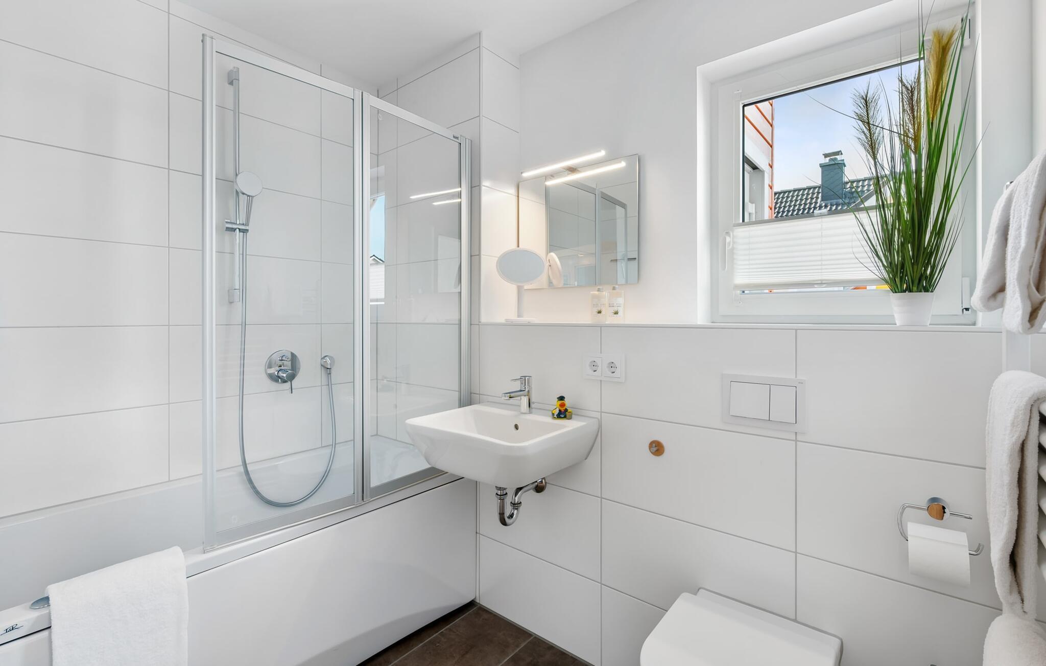 Badezimmer (nr. 1) - WC. Warmes und kaltes Wasser. Dusche und Badewanne