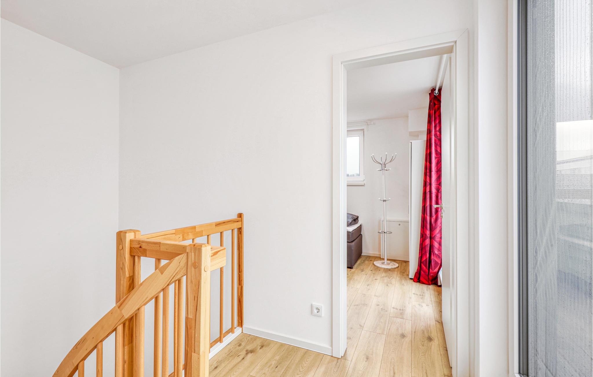 Vom Erdgeschoss gelangt man über eine geschwungene Treppe in das Obergeschoss des Doppelhauses, wo zwei geräumige Schlafzimmer auf Sie warten. Hier können Sie die schöne Nordseeluft von einem umlaufenden Balkon genießen, welcher von beiden Schlafzimmern aus zugänglich ist. Hochwertige Möbel und eine gelungene Raumaufteilung machen dieses Ferienhaus zu einem traumhaften Urlaubsdomizil.