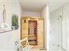 des Doppelhauses, wo ein geräumiges Schlafzimmer auf Sie wartet. Genießen Sie hier Ihre Nachtruhe oder entspannen sich in der Infrarotsauna im Badezimmer. Hier können Sie die schöne Nordseeluft von einem Balkon genießen, welcher von den Räumen aus zugänglich ist. Hochwertige Möbel und eine gelungene Raumaufteilung machen dieses Ferienhaus zu einem traumhaften Urlaubsdomizil.